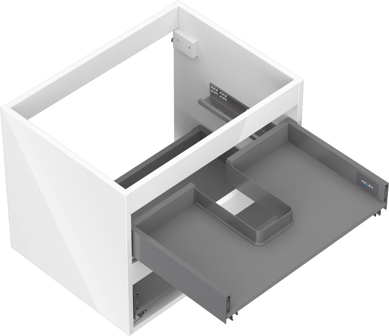 Výřez v zásuvce je navržen tak, aby pojmul sifon, který je nezbytný v instalacích umyvadlových. Díky tomu může být nábytek plně funkčně namontován, aniž by bylo nutné vzdát se prostoru v zásuvce ve prospěch instalace.