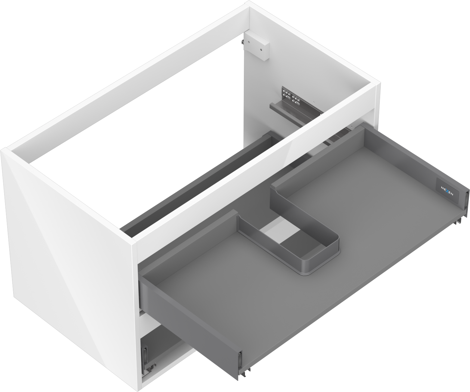 Výřez v zásuvce je navržen tak, aby pojmul sifon, který je nezbytný v instalacích umyvadlových. Díky tomu může být nábytek plně funkčně namontován, aniž by bylo nutné vzdát se prostoru v zásuvce ve prospěch instalace.