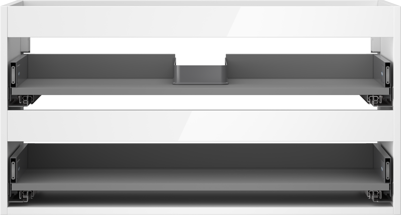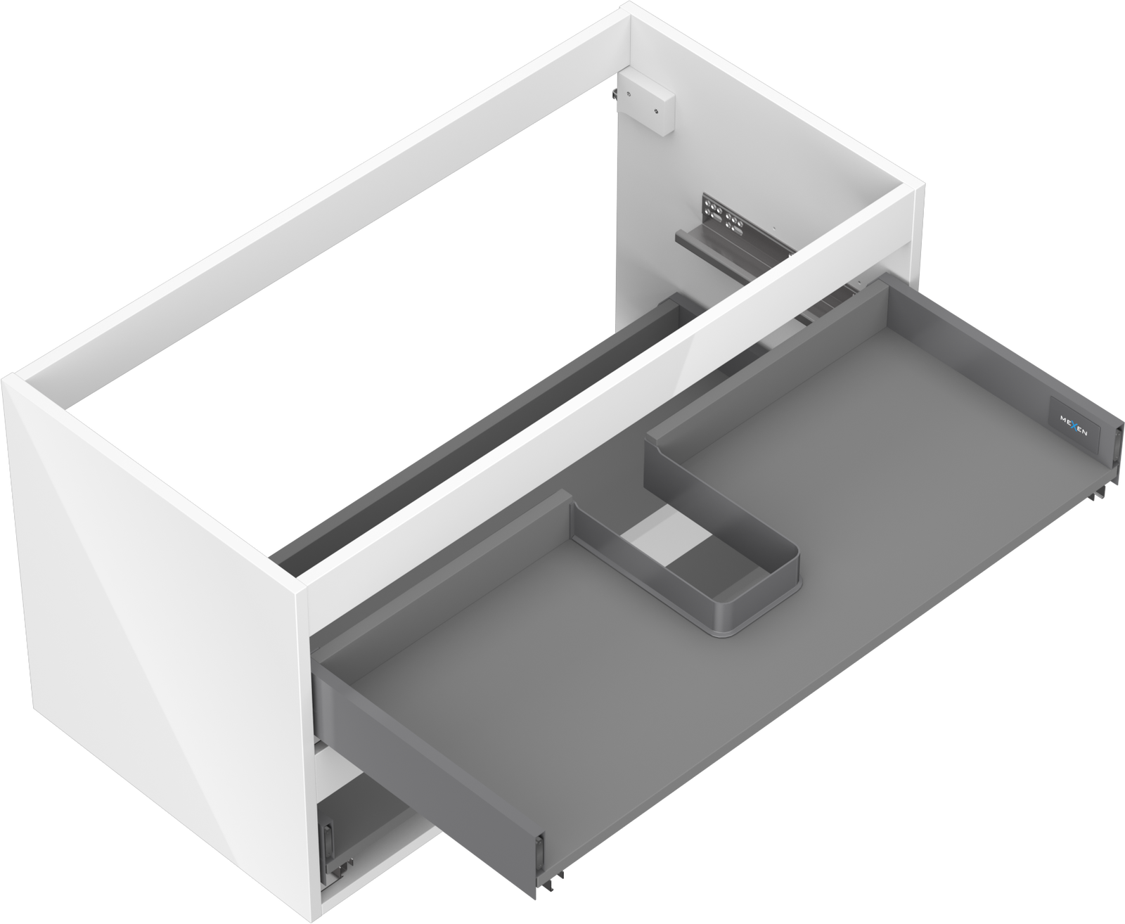 Výřez v zásuvce je navržen tak, aby pojmul sifon, který je nezbytný v instalacích umyvadlových. Díky tomu může být nábytek plně funkčně namontován, aniž by bylo nutné vzdát se prostoru v zásuvce ve prospěch instalace.