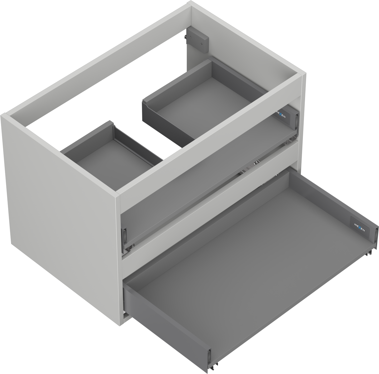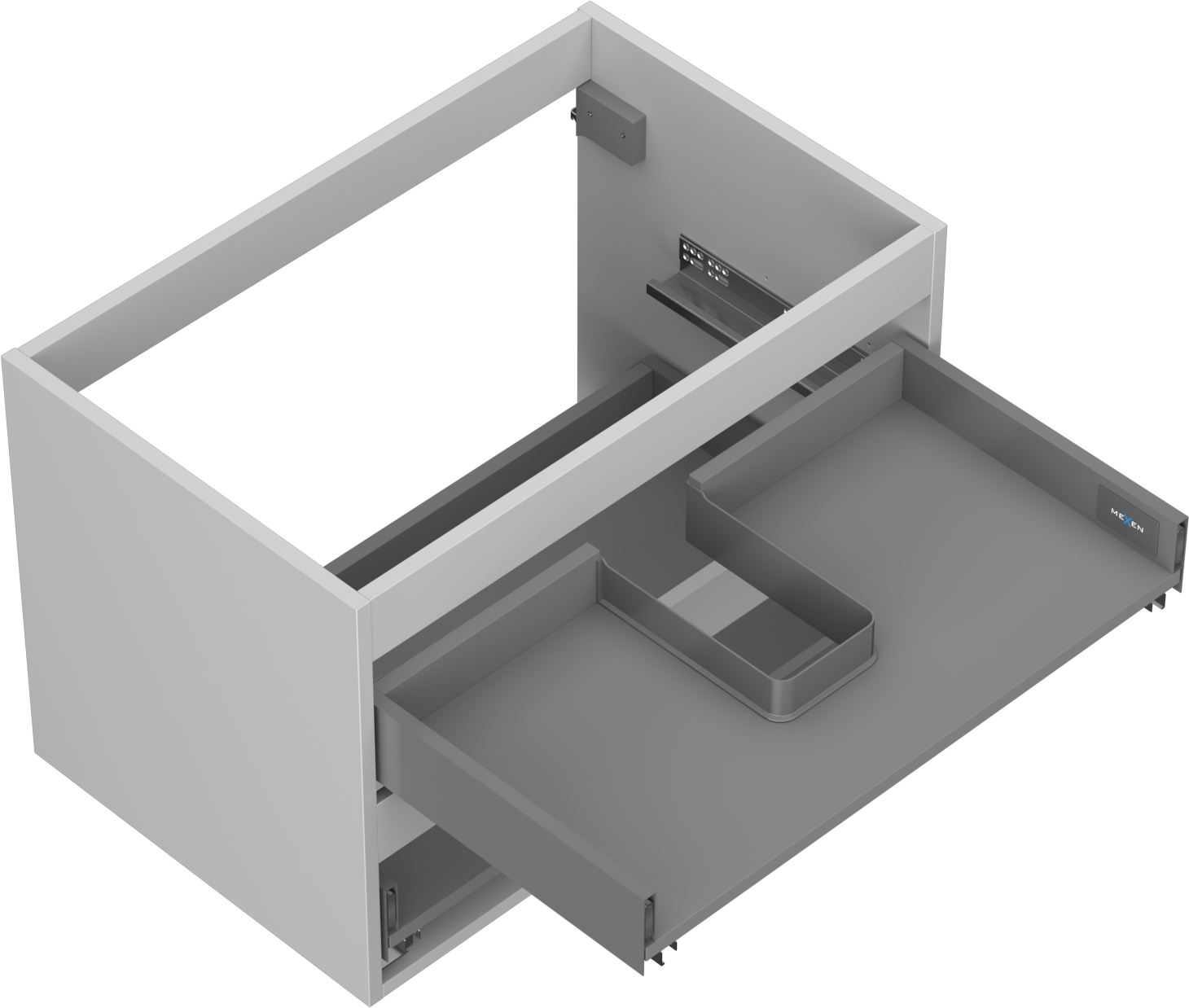 Výřez v zásuvce je navržen tak, aby pojmul sifon, který je nezbytný v instalacích umyvadlových. Díky tomu může být nábytek plně funkčně namontován, aniž by bylo nutné vzdát se prostoru v zásuvce ve prospěch instalace.