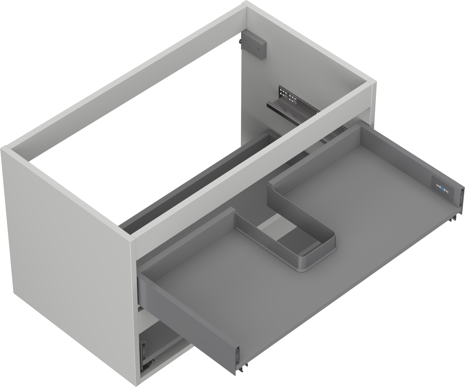 Výřez v zásuvce je navržen tak, aby pojmul sifon, který je nezbytný v instalacích umyvadlových. Díky tomu může být nábytek plně funkčně namontován, aniž by bylo nutné vzdát se prostoru v zásuvce ve prospěch instalace.