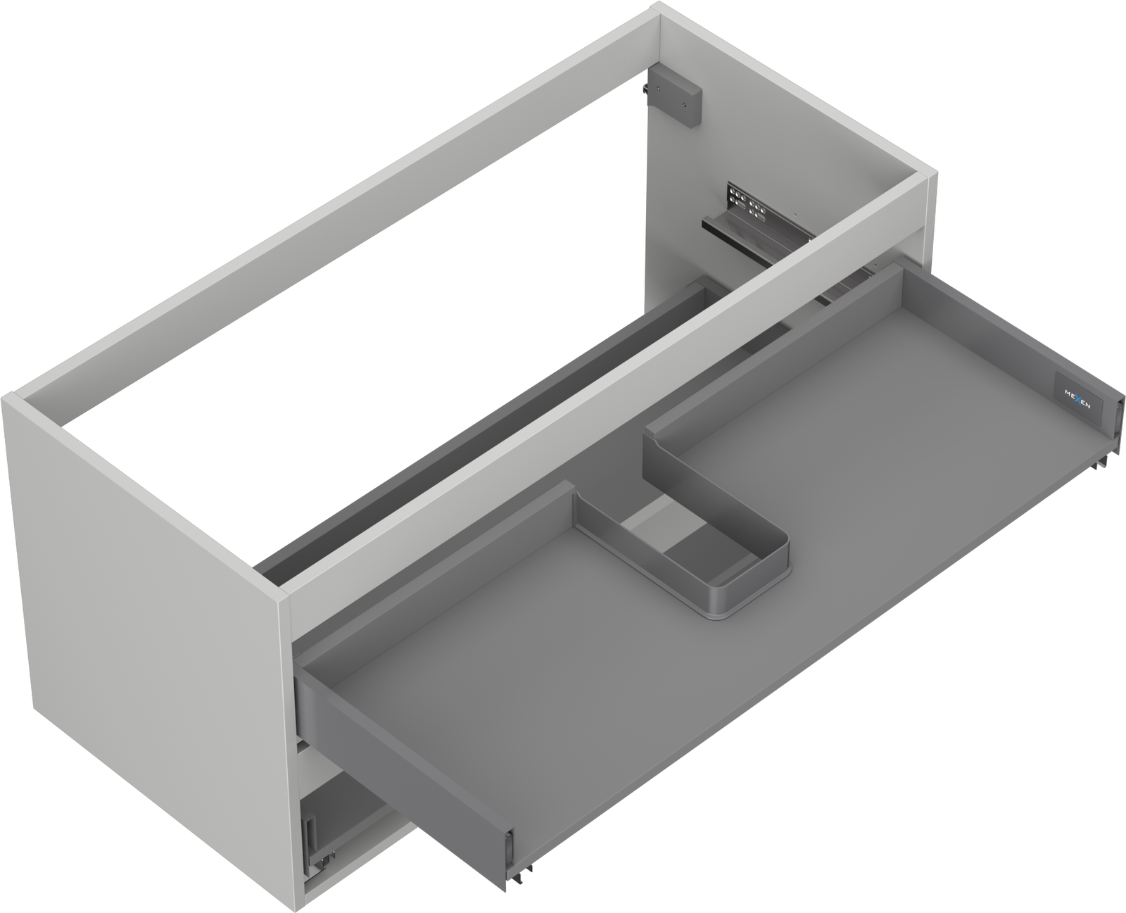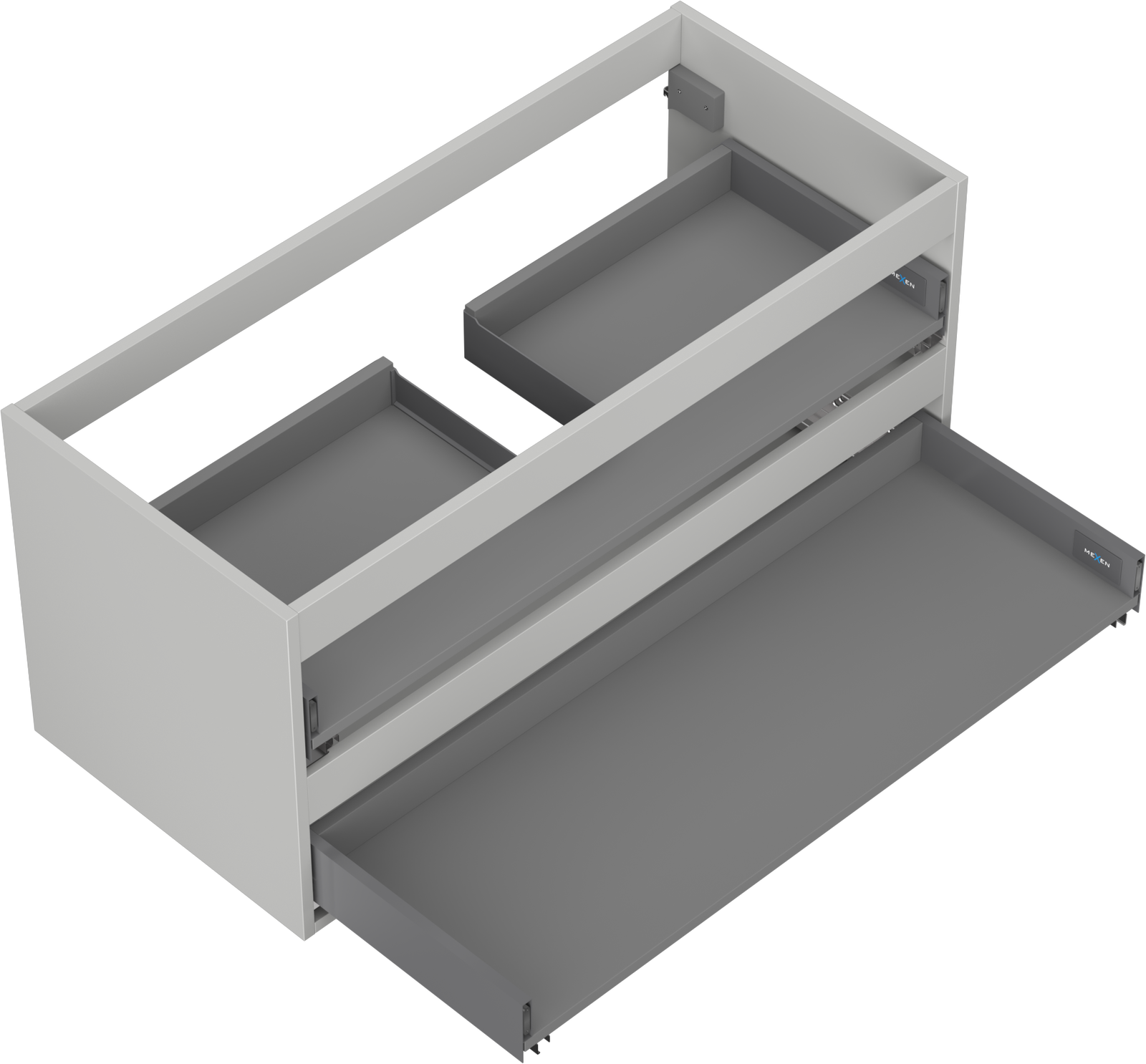 Výřez v zásuvce je navržen tak, aby pojmul sifon, který je nezbytný v instalacích umyvadlových. Díky tomu může být nábytek plně funkčně namontován, aniž by bylo nutné vzdát se prostoru v zásuvce ve prospěch instalace.