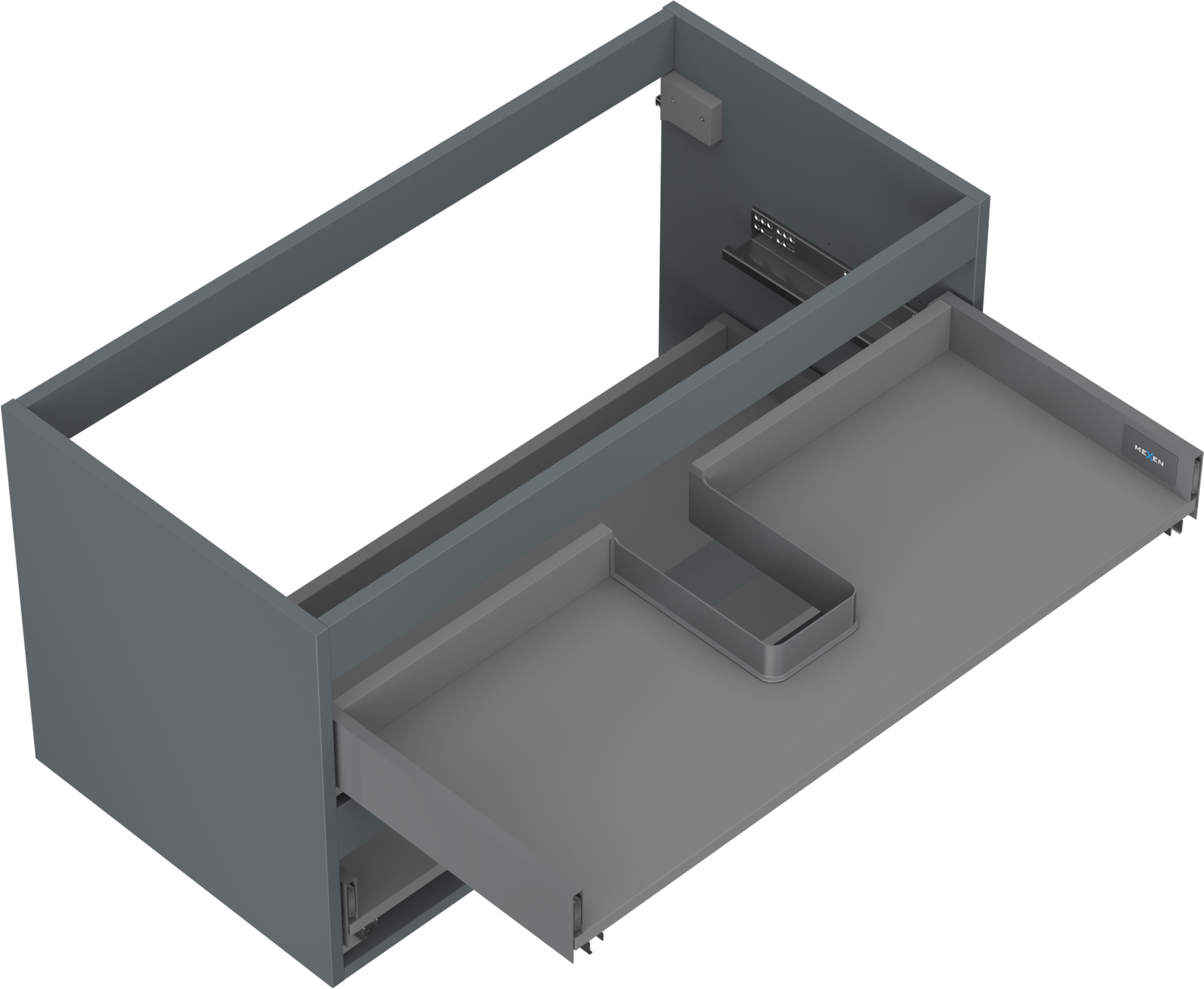 Výřez v zásuvce je navržen tak, aby pojmul sifon, který je nezbytný v instalacích umyvadlových. Díky tomu může být nábytek plně funkčně namontován, aniž by bylo nutné vzdát se prostoru v zásuvce ve prospěch instalace.