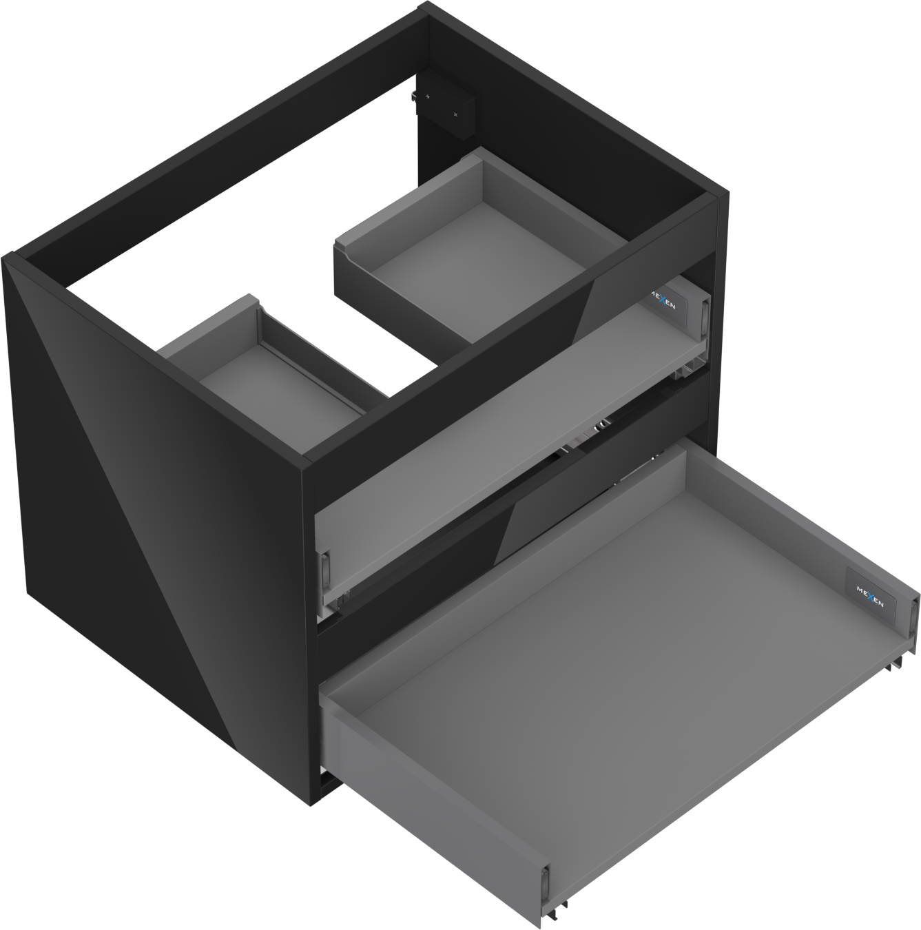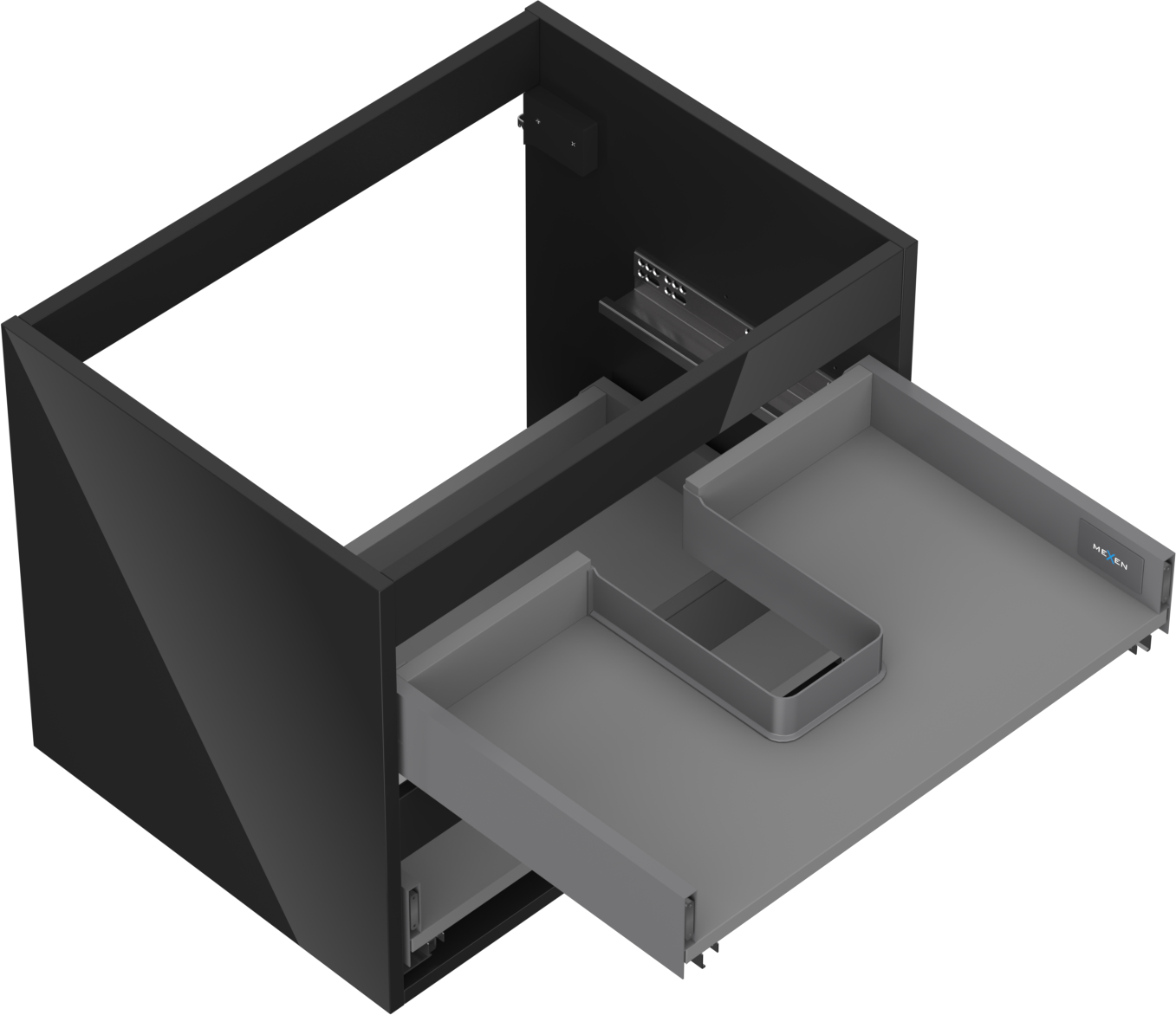 Výřez v zásuvce je navržen tak, aby pojmul sifon, který je nezbytný v instalacích umyvadlových. Díky tomu může být nábytek plně funkčně namontován, aniž by bylo nutné vzdát se prostoru v zásuvce ve prospěch instalace.