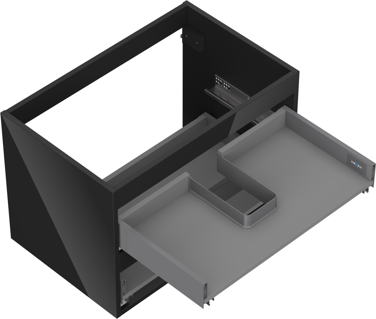 Výřez v zásuvce je navržen tak, aby pojmul sifon, který je nezbytný v instalacích umyvadlových. Díky tomu může být nábytek plně funkčně namontován, aniž by bylo nutné vzdát se prostoru v zásuvce ve prospěch instalace.