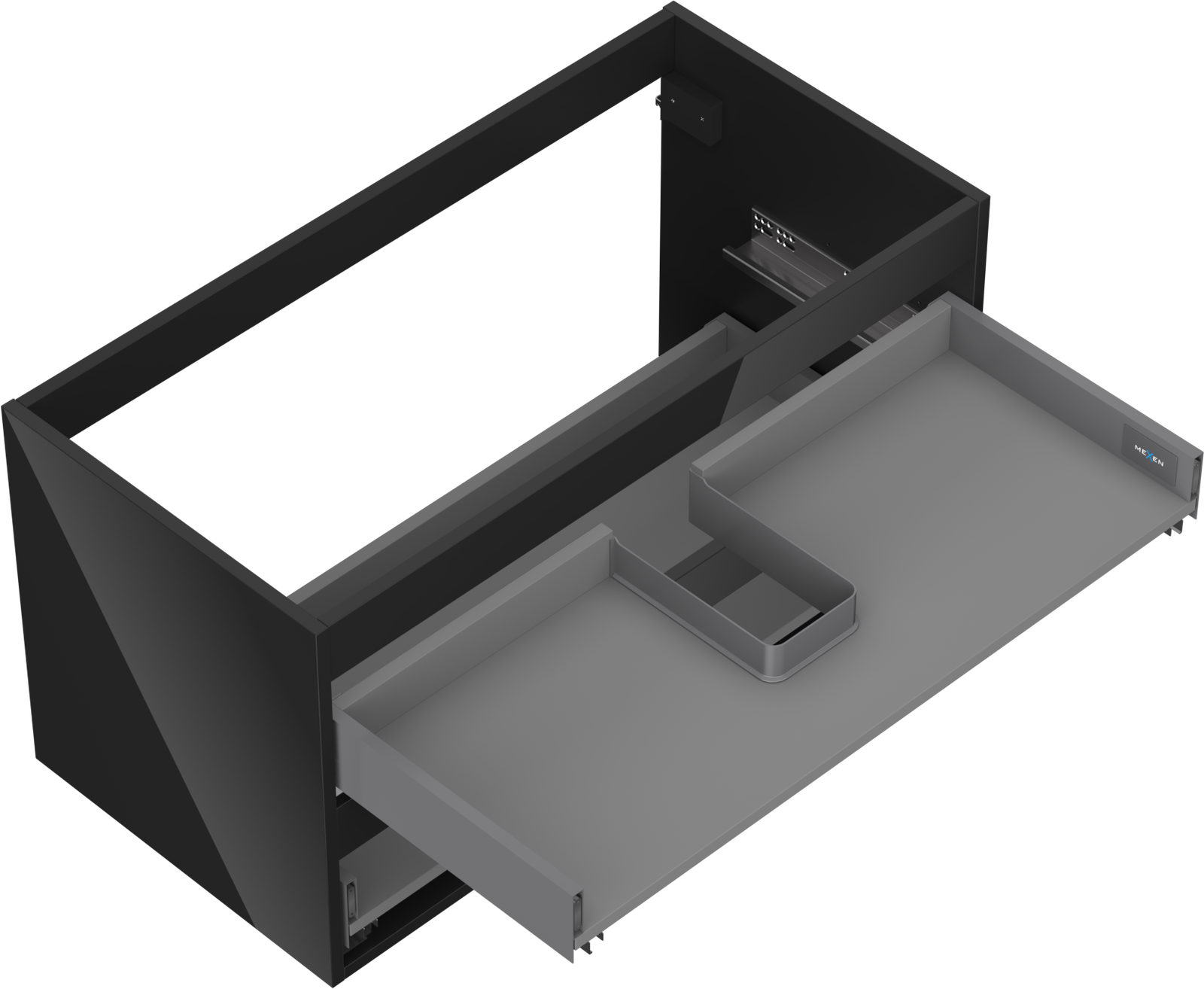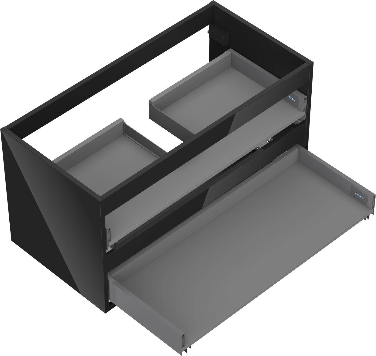 Výřez v zásuvce je navržen tak, aby pojmul sifon, který je nezbytný v instalacích umyvadlových. Díky tomu může být nábytek plně funkčně namontován, aniž by bylo nutné vzdát se prostoru v zásuvce ve prospěch instalace.