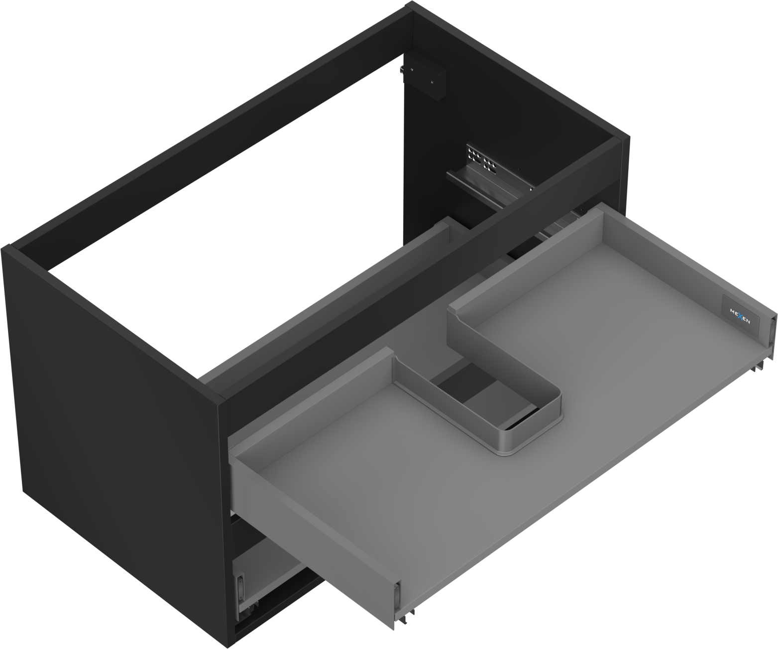 Výřez v zásuvce je navržen tak, aby pojmul sifon, který je nezbytný v instalacích umyvadlových. Díky tomu může být nábytek plně funkčně namontován, aniž by bylo nutné vzdát se prostoru v zásuvce ve prospěch instalace.