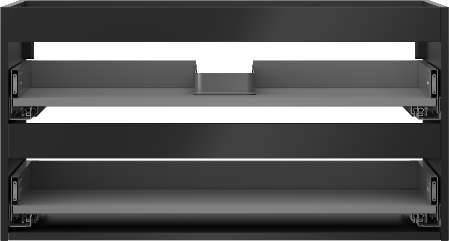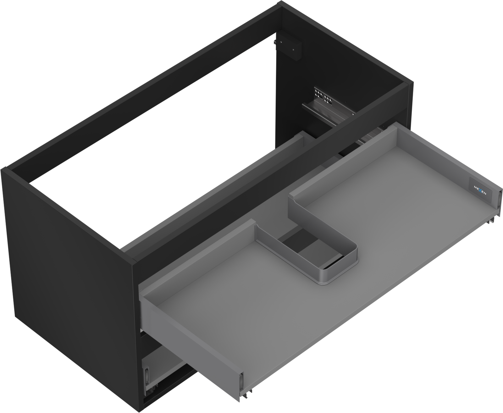 Výřez v zásuvce je navržen tak, aby pojmul sifon, který je nezbytný v instalacích umyvadlových. Díky tomu může být nábytek plně funkčně namontován, aniž by bylo nutné vzdát se prostoru v zásuvce ve prospěch instalace.