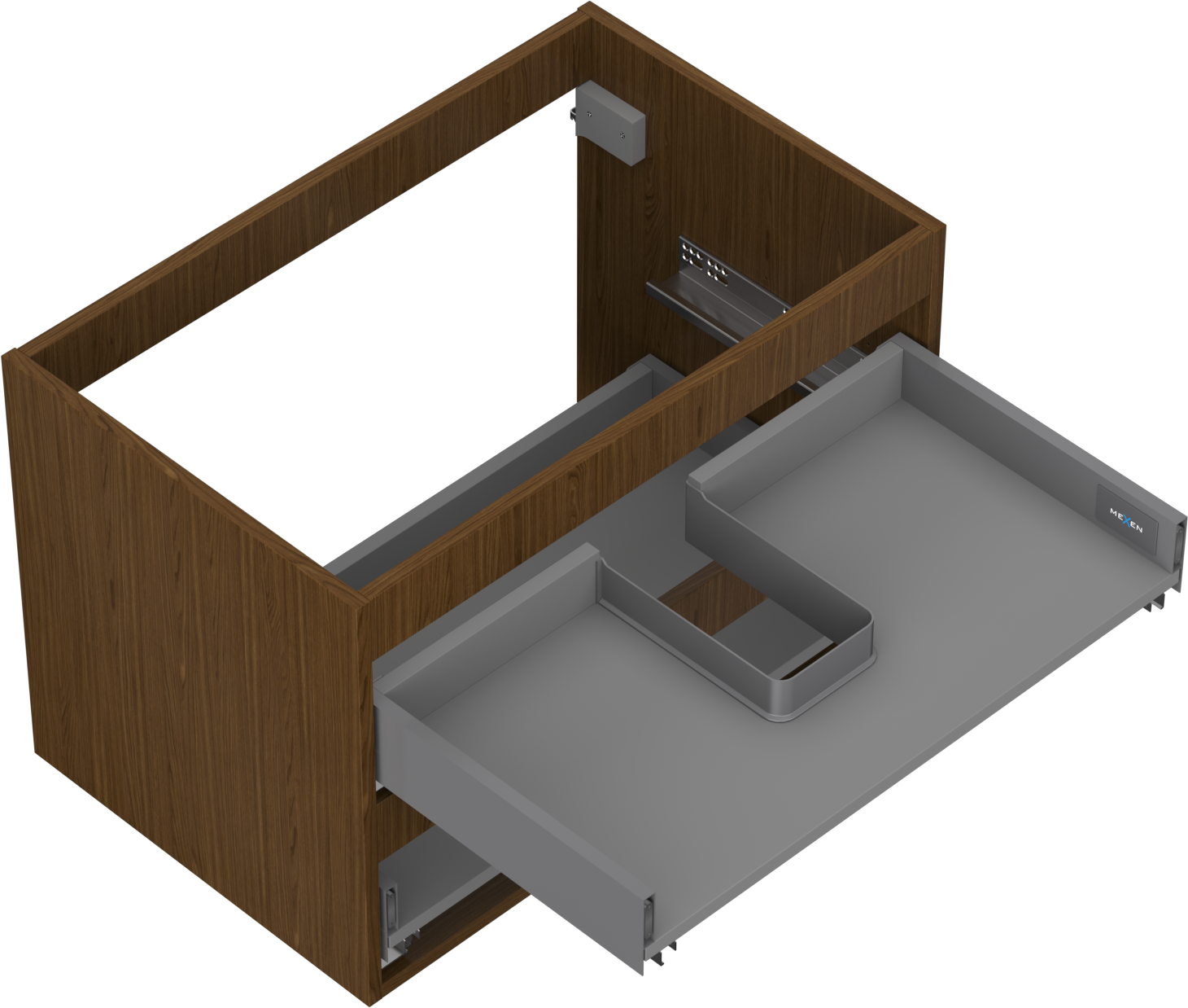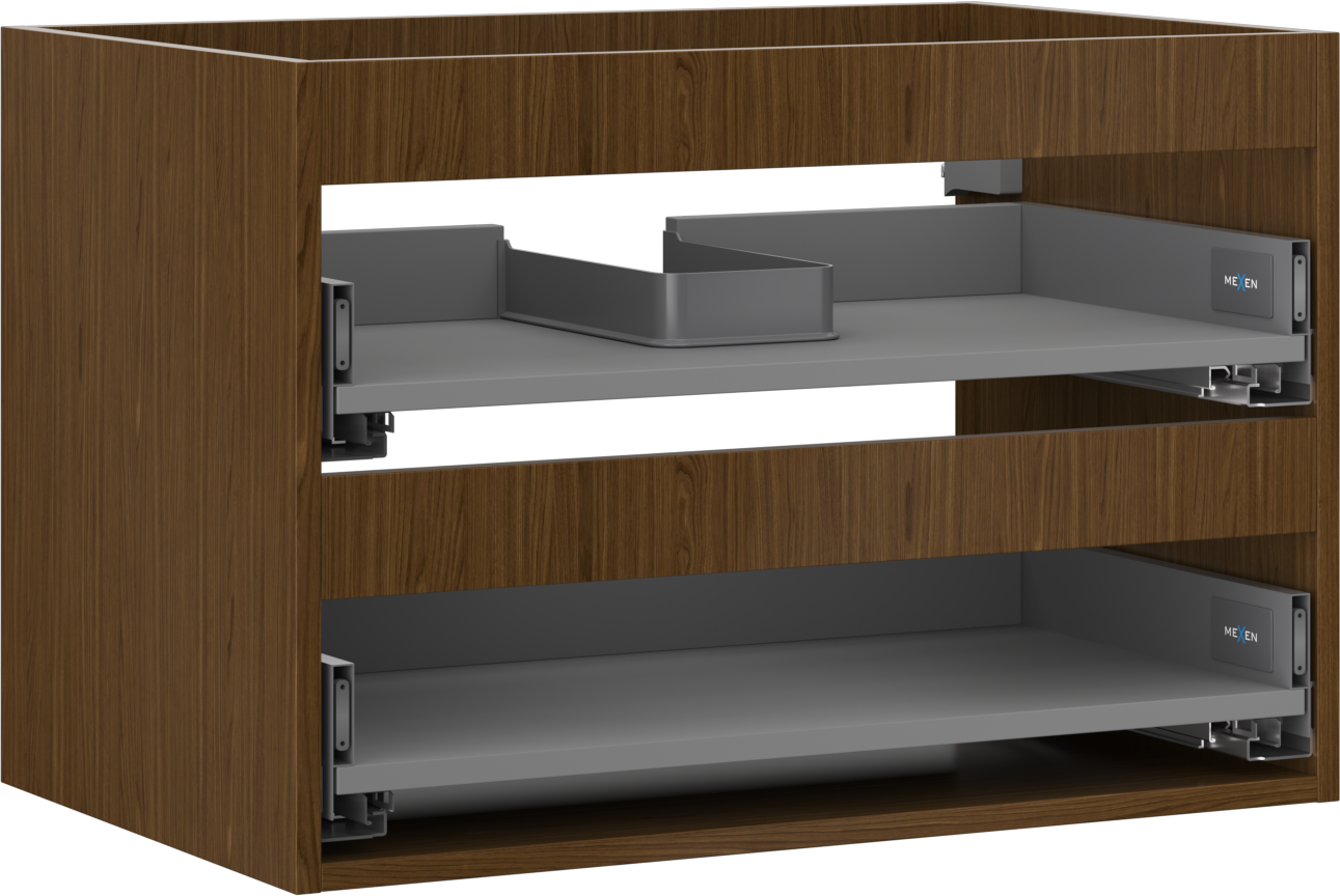 Výřez v zásuvce je navržen tak, aby pojmul sifon, který je nezbytný v instalacích umyvadlových. Díky tomu může být nábytek plně funkčně namontován, aniž by bylo nutné vzdát se prostoru v zásuvce ve prospěch instalace.