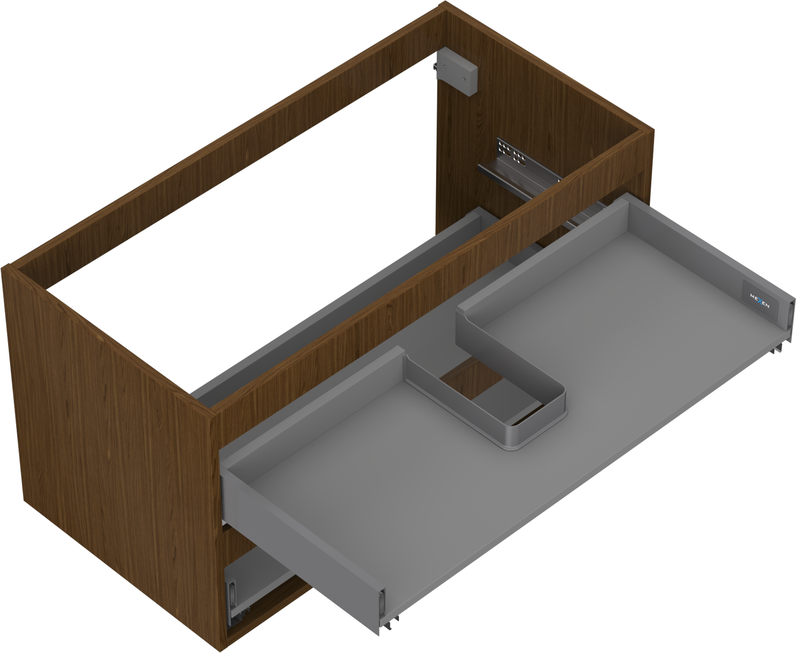 Výřez v zásuvce je navržen tak, aby pojmul sifon, který je nezbytný v instalacích umyvadlových. Díky tomu může být nábytek plně funkčně namontován, aniž by bylo nutné vzdát se prostoru v zásuvce ve prospěch instalace.
