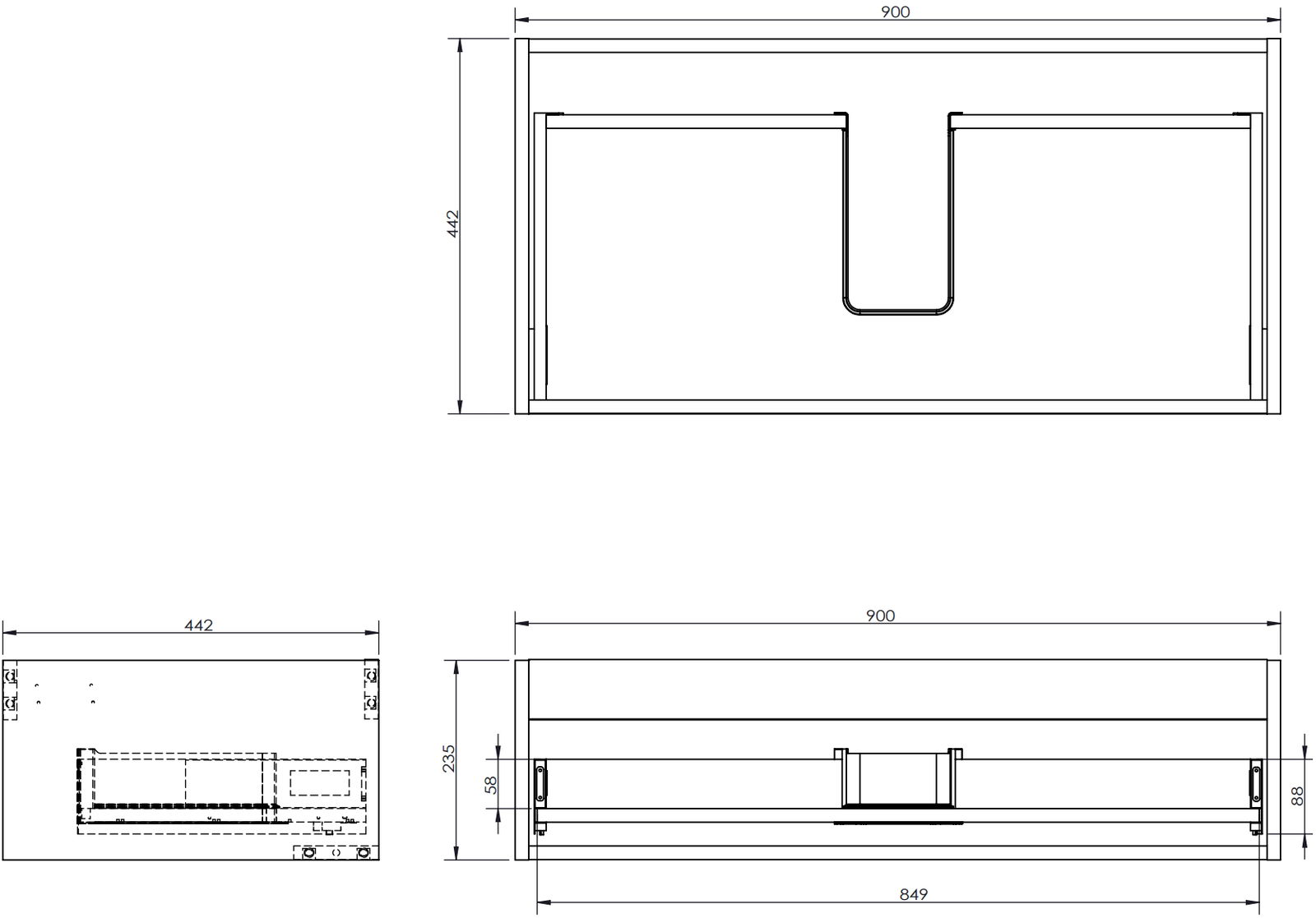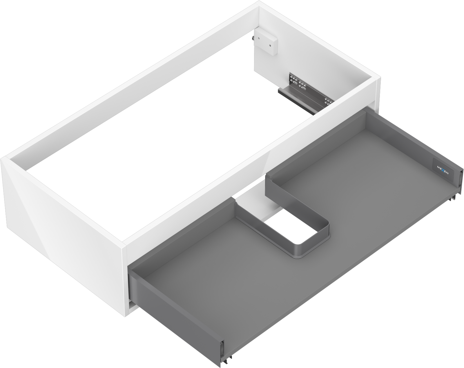 Výřez v zásuvce je navržen tak, aby pojmul sifon, který je nezbytný v instalacích umyvadlových. Díky tomu může být nábytek plně funkčně namontován, aniž by bylo nutné vzdát se prostoru v zásuvce ve prospěch instalace.
