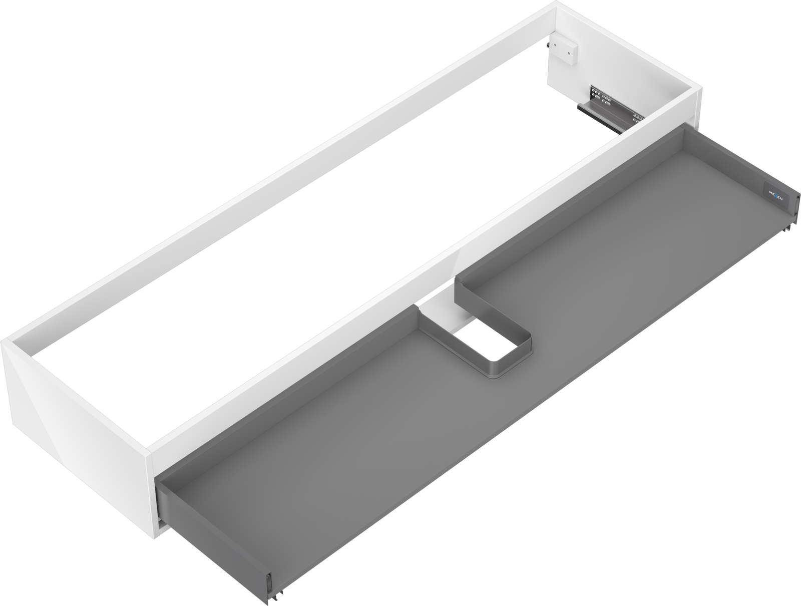 Výřez v zásuvce je navržen tak, aby pojmul sifon, který je nezbytný v instalacích umyvadlových. Díky tomu může být nábytek plně funkčně namontován, aniž by bylo nutné vzdát se prostoru v zásuvce ve prospěch instalace.