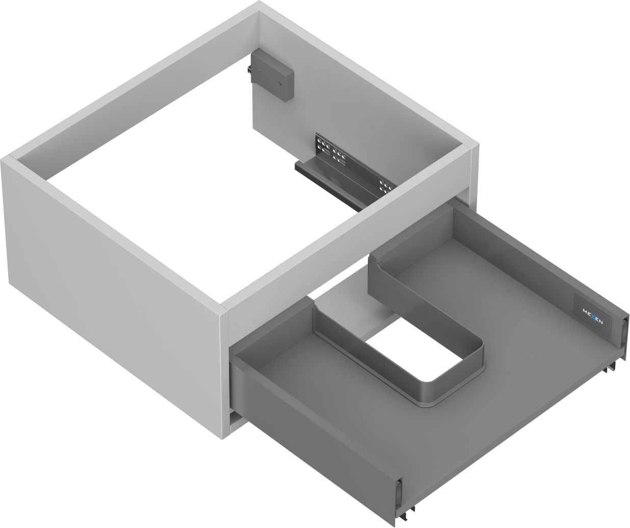 Výřez v zásuvce je navržen tak, aby pojmul sifon, který je nezbytný v instalacích umyvadlových. Díky tomu může být nábytek plně funkčně namontován, aniž by bylo nutné vzdát se prostoru v zásuvce ve prospěch instalace.