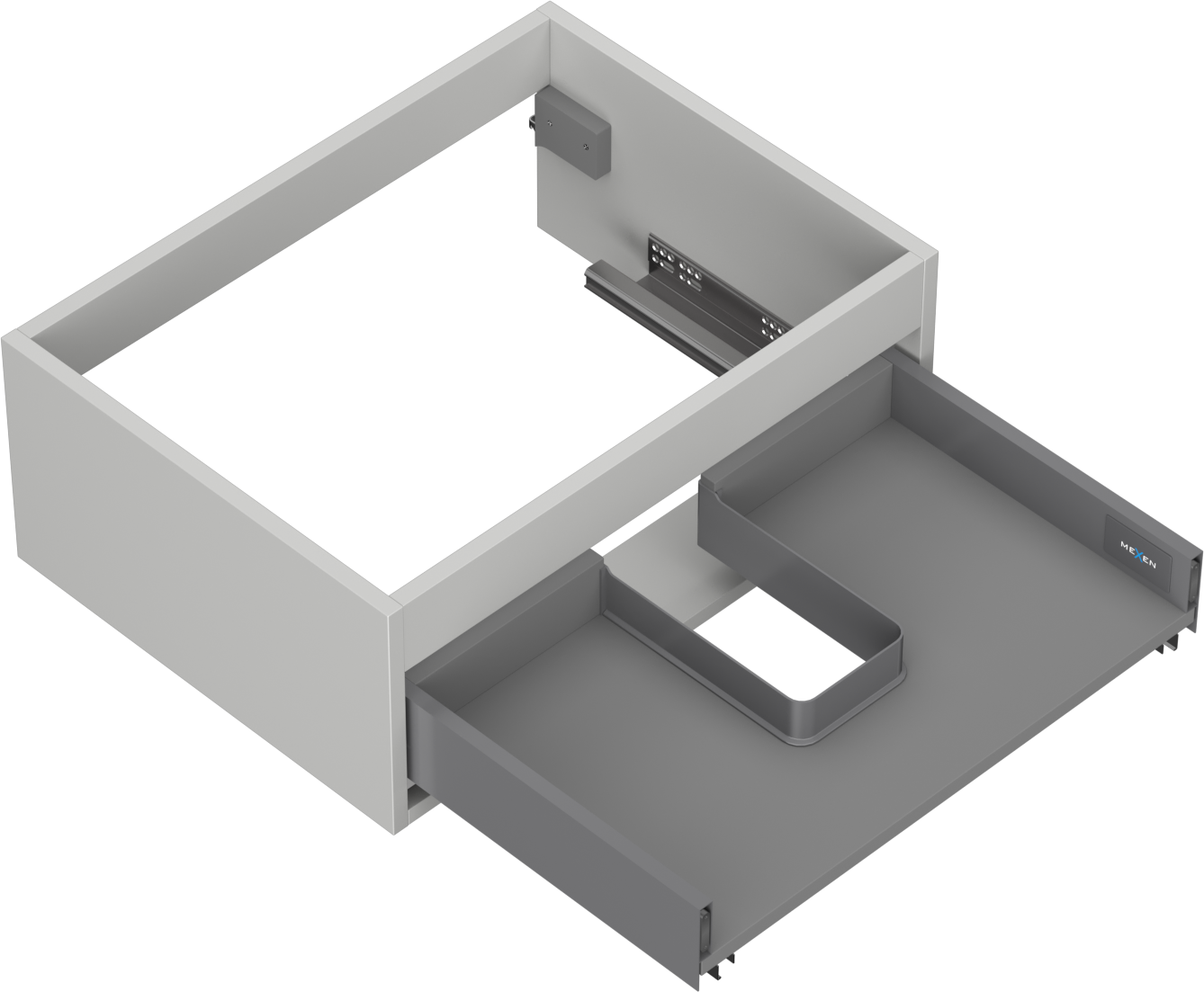Výřez v zásuvce je navržen tak, aby pojmul sifon, který je nezbytný v instalacích umyvadlových. Díky tomu může být nábytek plně funkčně namontován, aniž by bylo nutné vzdát se prostoru v zásuvce ve prospěch instalace.