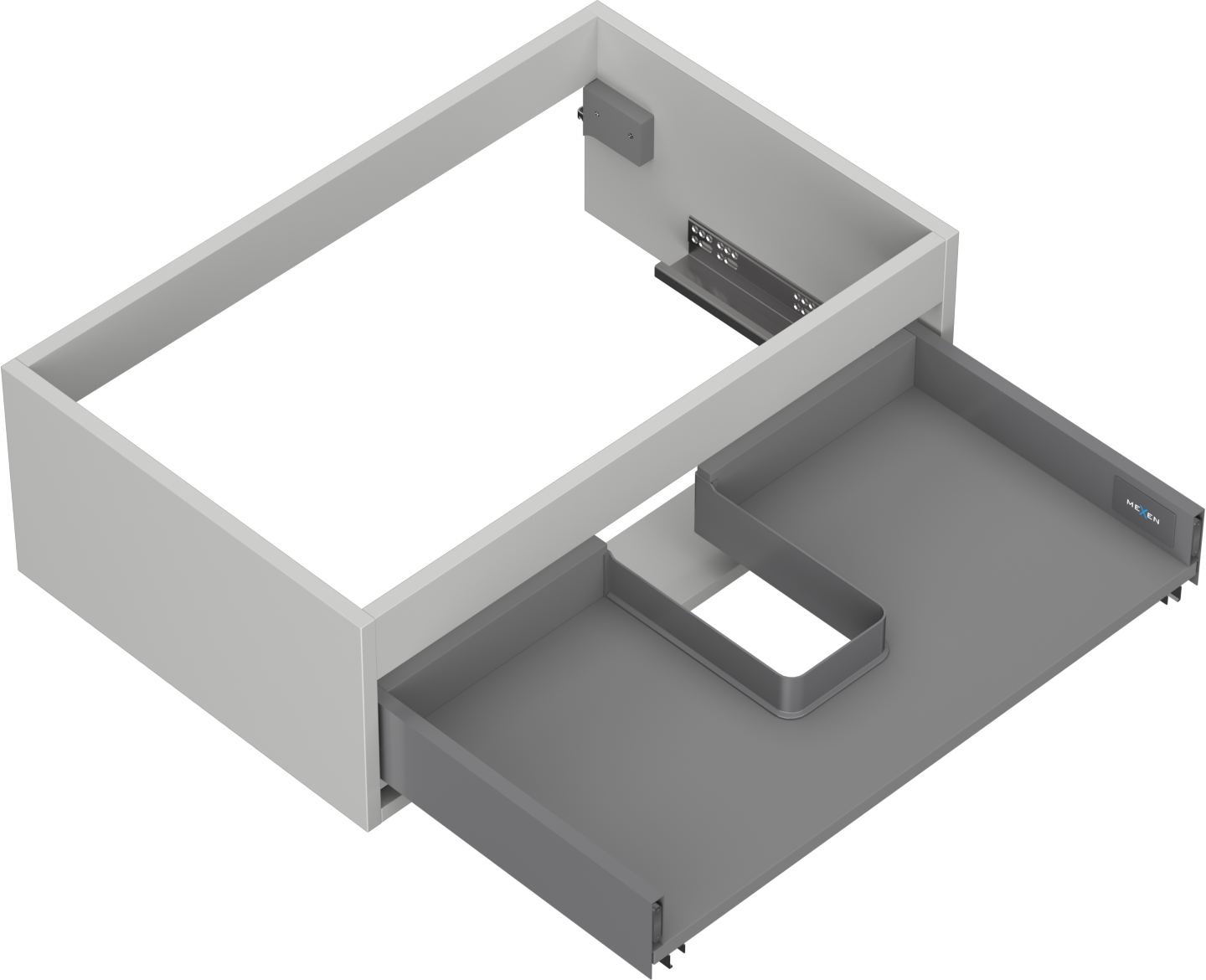 Výřez v zásuvce je navržen tak, aby pojmul sifon, který je nezbytný v instalacích umyvadlových. Díky tomu může být nábytek plně funkčně namontován, aniž by bylo nutné vzdát se prostoru v zásuvce ve prospěch instalace.