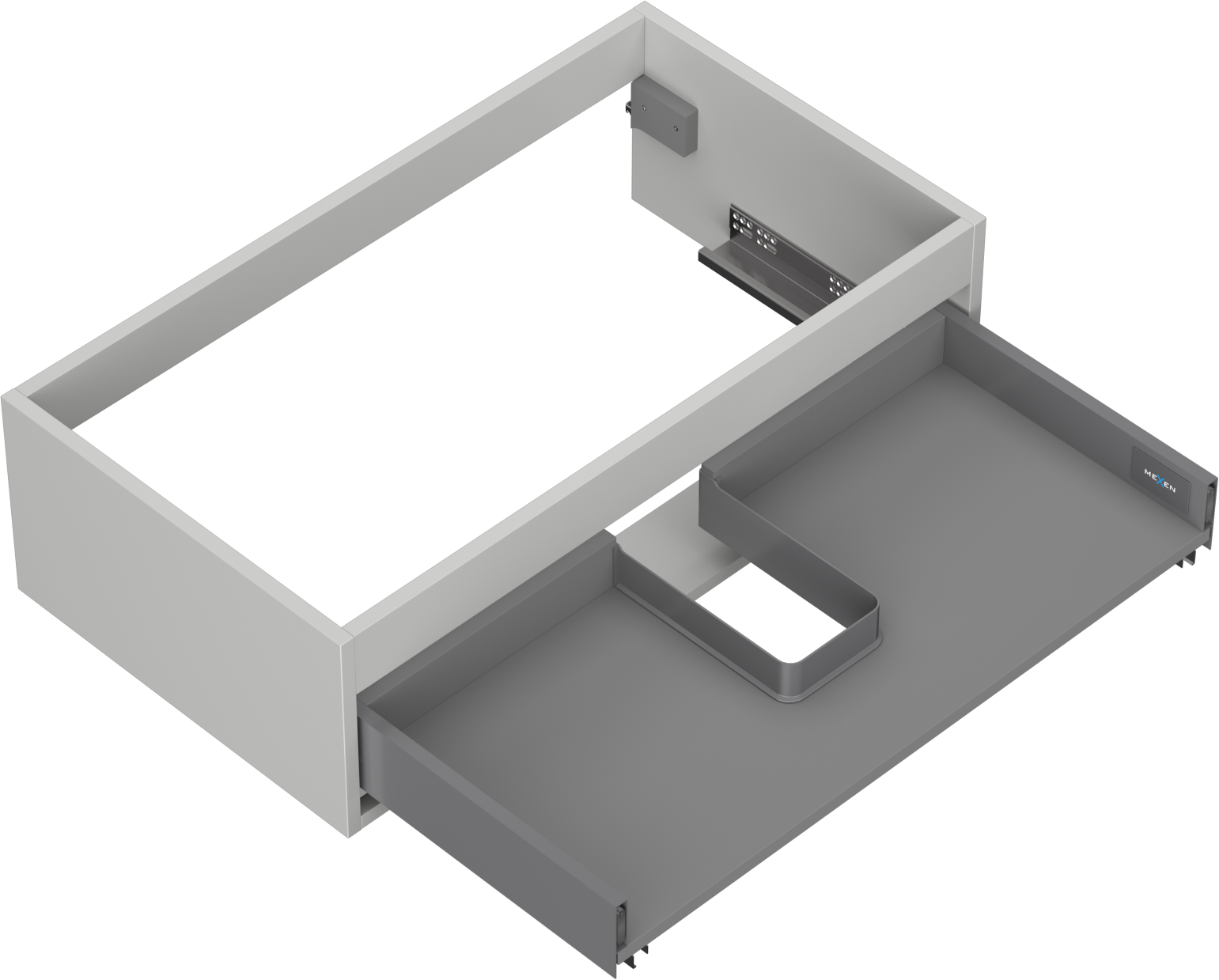 Výřez v zásuvce je navržen tak, aby pojmul sifon, který je nezbytný v instalacích umyvadlových. Díky tomu může být nábytek plně funkčně namontován, aniž by bylo nutné vzdát se prostoru v zásuvce ve prospěch instalace.