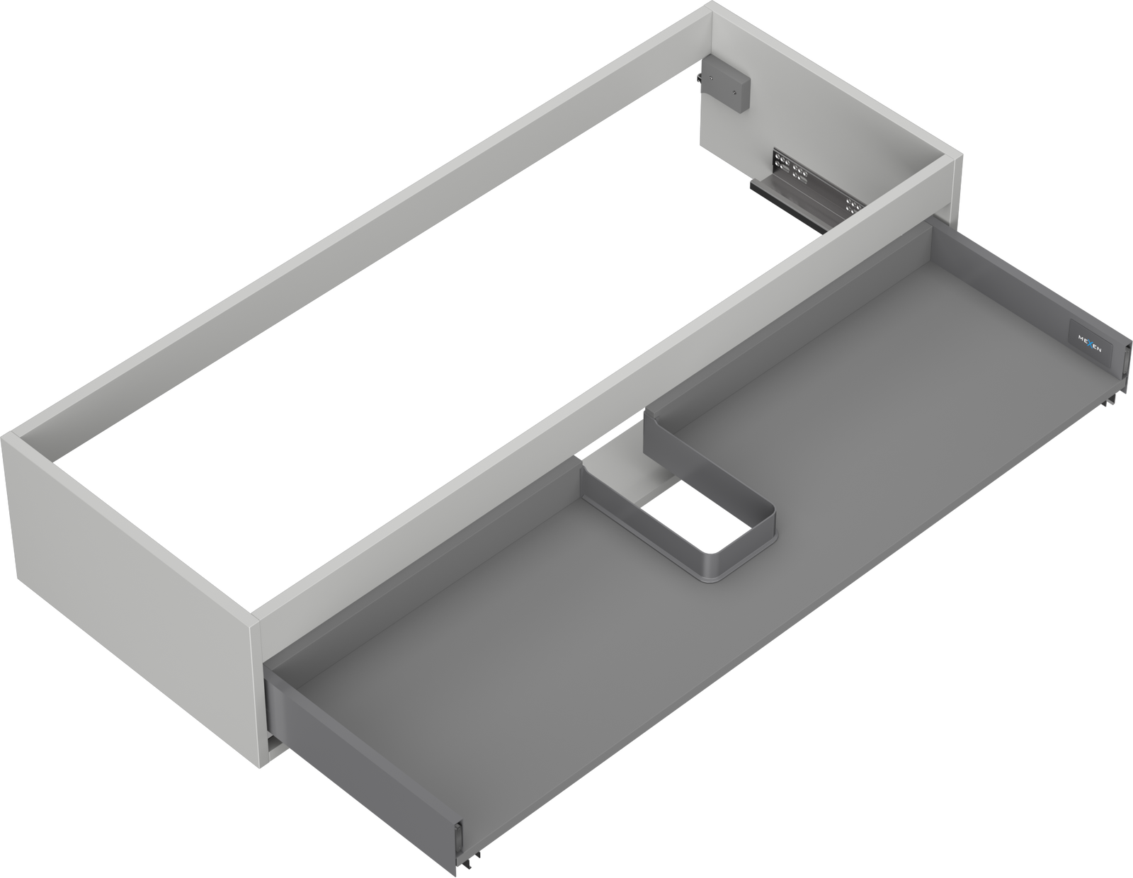 Výřez v zásuvce je navržen tak, aby pojmul sifon, který je nezbytný v instalacích umyvadlových. Díky tomu může být nábytek plně funkčně namontován, aniž by bylo nutné vzdát se prostoru v zásuvce ve prospěch instalace.