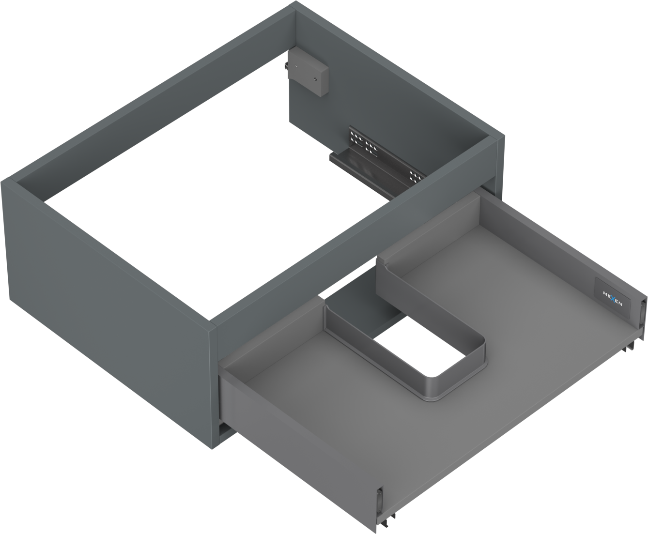 Výřez v zásuvce je navržen tak, aby pojmul sifon, který je nezbytný v instalacích umyvadlových. Díky tomu může být nábytek plně funkčně namontován, aniž by bylo nutné vzdát se prostoru v zásuvce ve prospěch instalace.