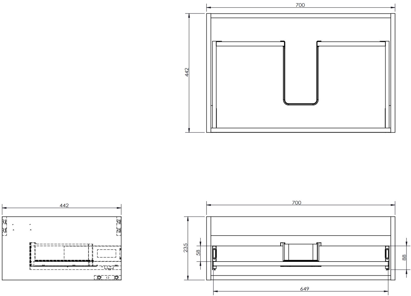Výřez v zásuvce je navržen tak, aby pojmul sifon, který je nezbytný v instalacích umyvadlových. Díky tomu může být nábytek plně funkčně namontován, aniž by bylo nutné vzdát se prostoru v zásuvce ve prospěch instalace.