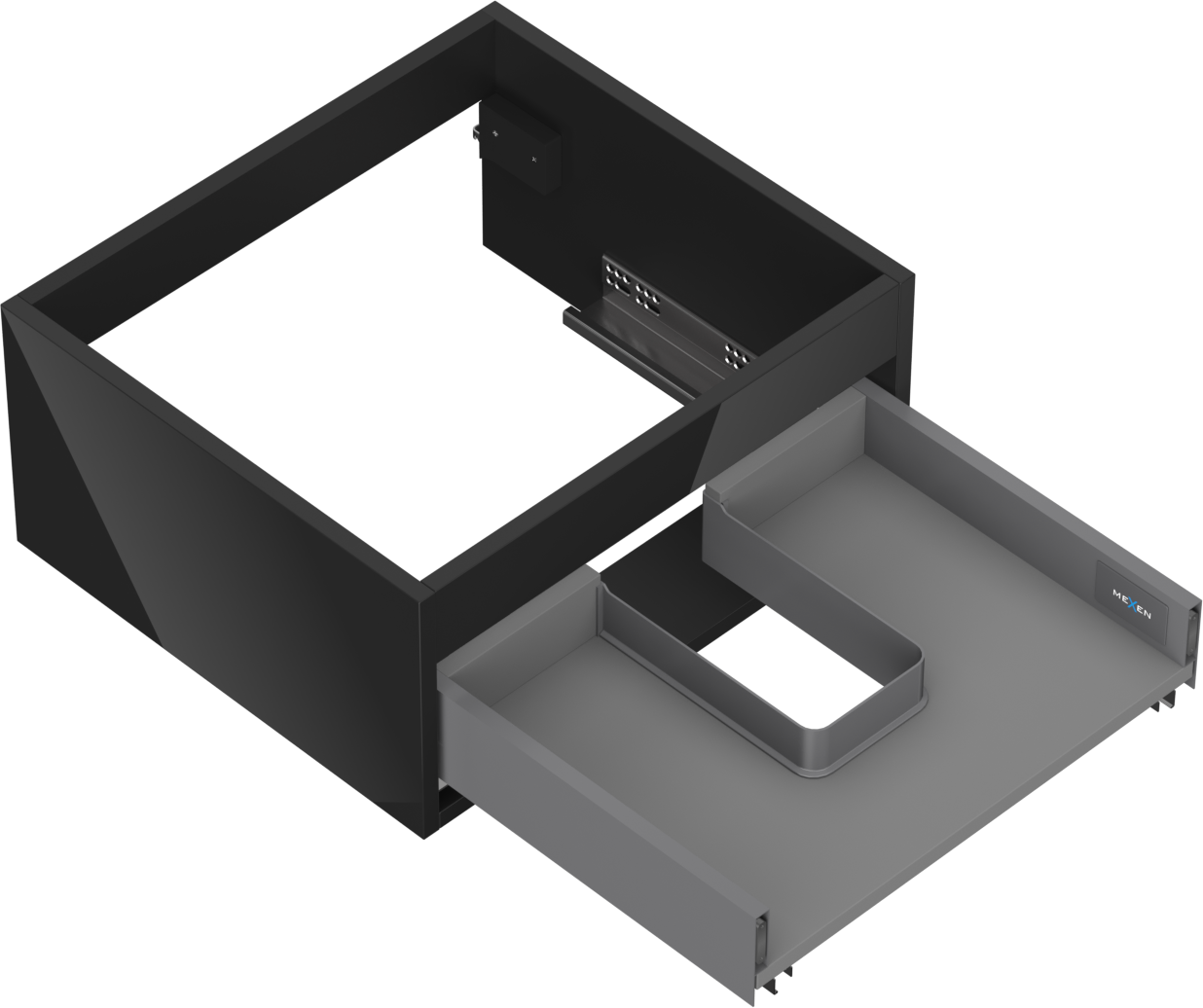 Výřez v zásuvce je navržen tak, aby pojmul sifon, který je nezbytný v instalacích umyvadlových. Díky tomu může být nábytek plně funkčně namontován, aniž by bylo nutné vzdát se prostoru v zásuvce ve prospěch instalace.