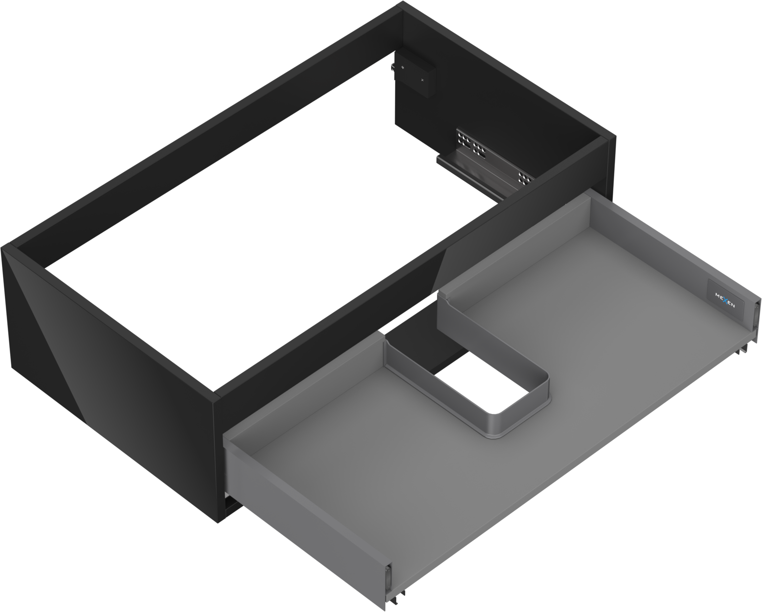 Výřez v zásuvce je navržen tak, aby pojmul sifon, který je nezbytný v instalacích umyvadlových. Díky tomu může být nábytek plně funkčně namontován, aniž by bylo nutné vzdát se prostoru v zásuvce ve prospěch instalace.