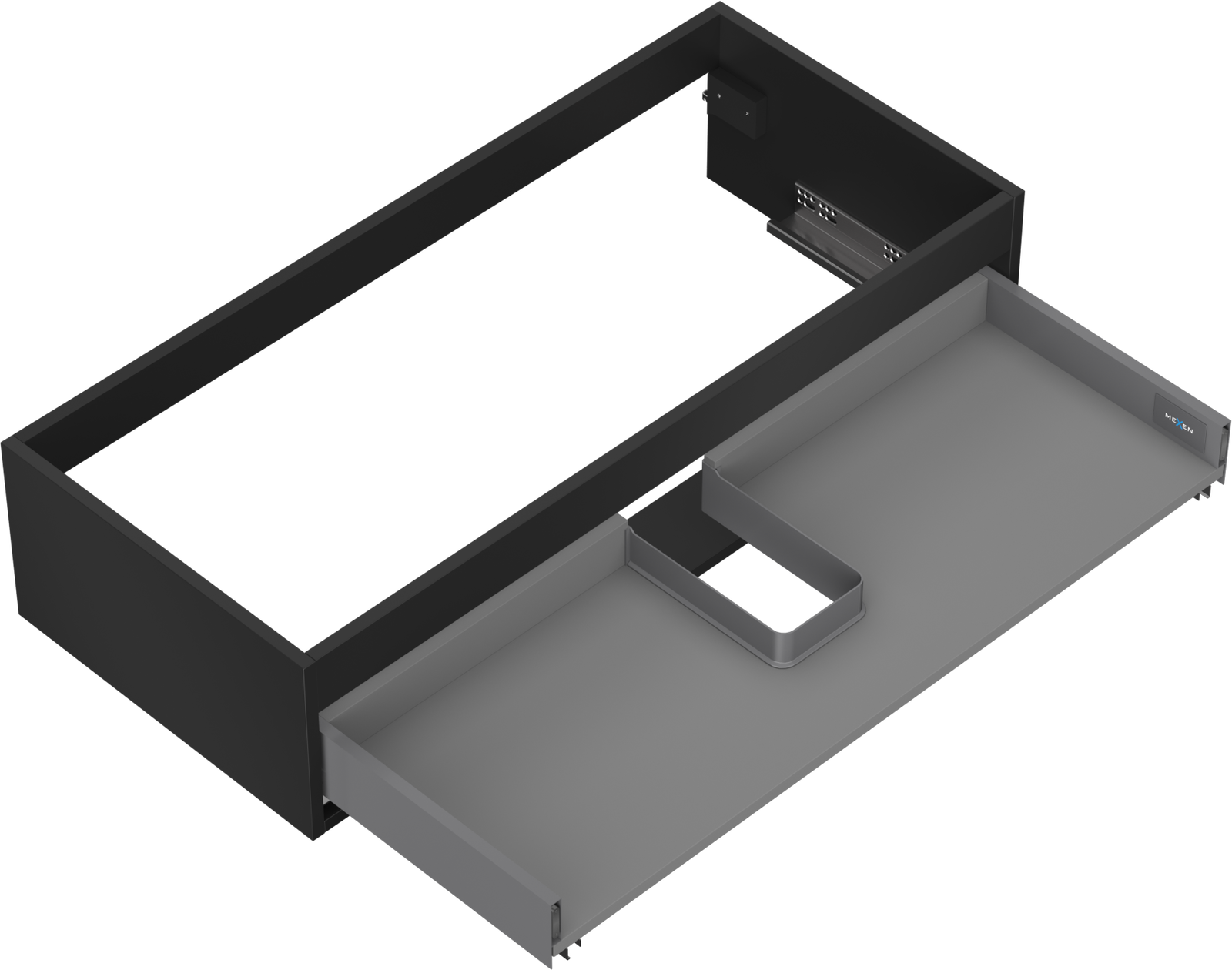 Výřez v zásuvce je navržen tak, aby pojmul sifon, který je nezbytný v instalacích umyvadlových. Díky tomu může být nábytek plně funkčně namontován, aniž by bylo nutné vzdát se prostoru v zásuvce ve prospěch instalace.