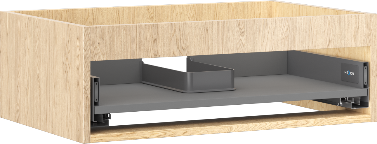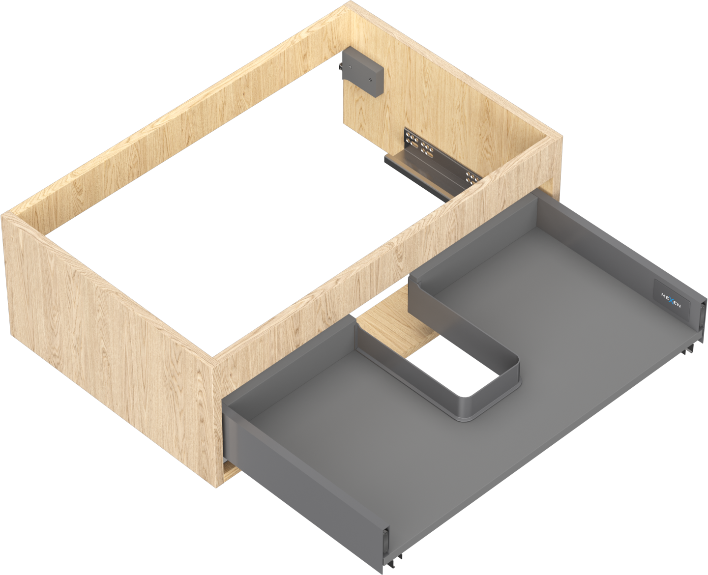 Výřez v zásuvce je navržen tak, aby pojmul sifon, který je nezbytný v instalacích umyvadlových. Díky tomu může být nábytek plně funkčně namontován, aniž by bylo nutné vzdát se prostoru v zásuvce ve prospěch instalace.