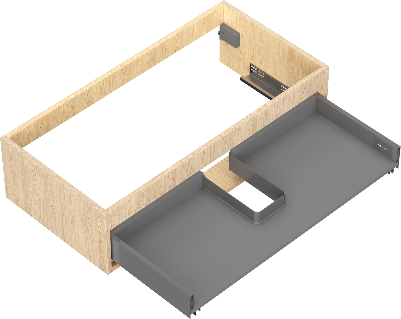 Výřez v zásuvce je navržen tak, aby pojmul sifon, který je nezbytný v instalacích umyvadlových. Díky tomu může být nábytek plně funkčně namontován, aniž by bylo nutné vzdát se prostoru v zásuvce ve prospěch instalace.