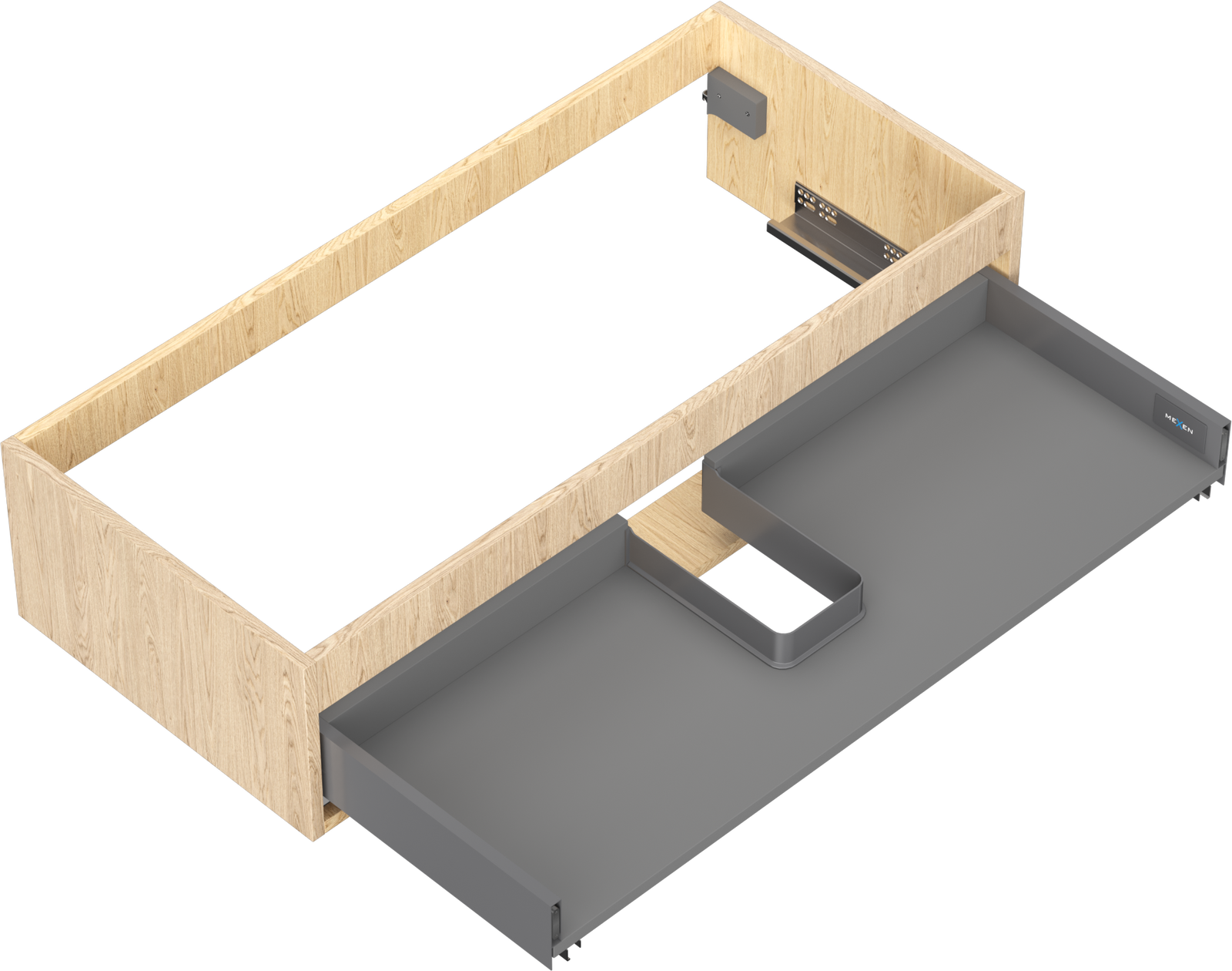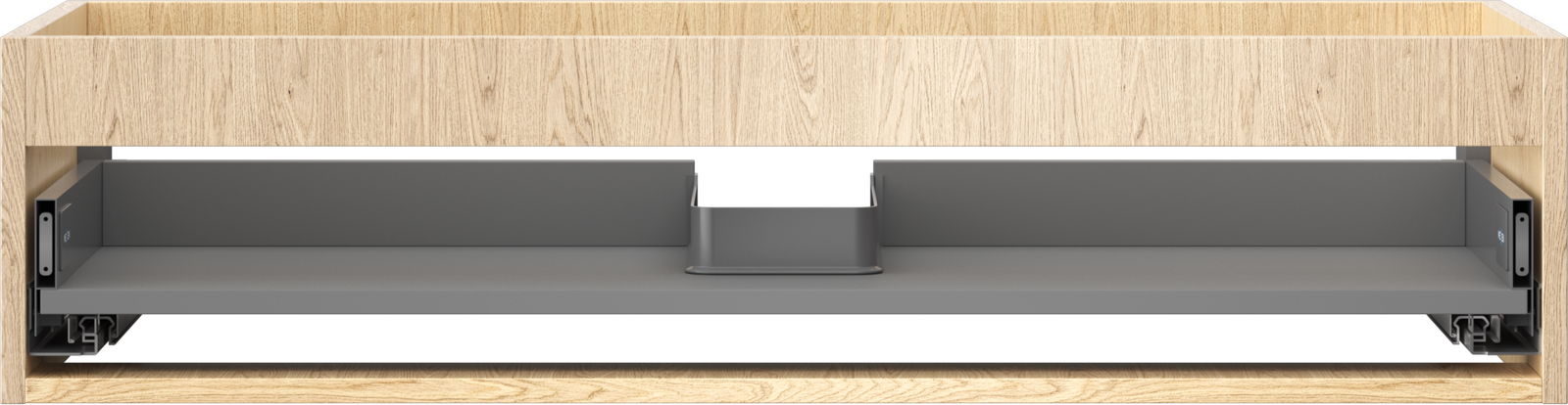 Výřez v zásuvce je navržen tak, aby pojmul sifon, který je nezbytný v instalacích umyvadlových. Díky tomu může být nábytek plně funkčně namontován, aniž by bylo nutné vzdát se prostoru v zásuvce ve prospěch instalace.