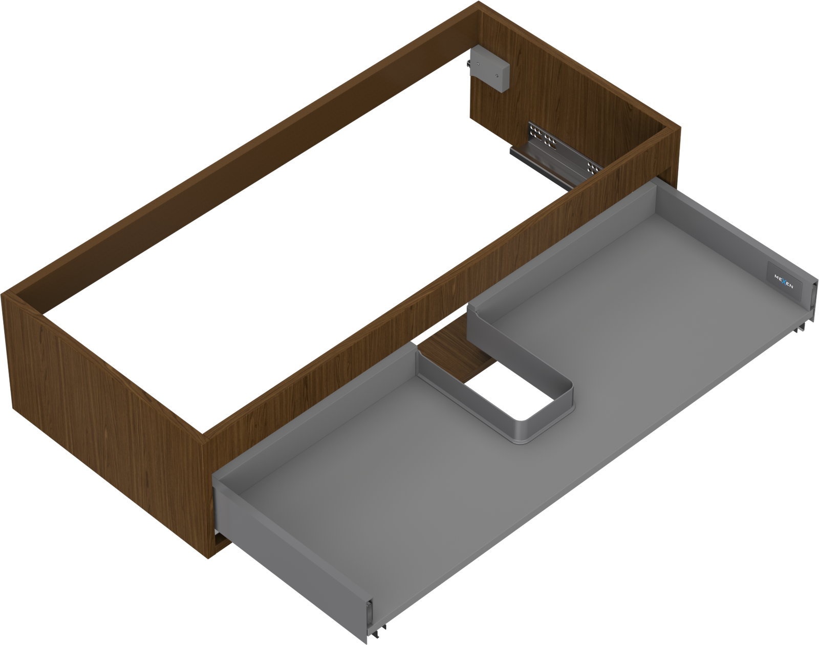 Výřez v zásuvce je navržen tak, aby pojmul sifon, který je nezbytný v instalacích umyvadlových. Díky tomu může být nábytek plně funkčně namontován, aniž by bylo nutné vzdát se prostoru v zásuvce ve prospěch instalace.