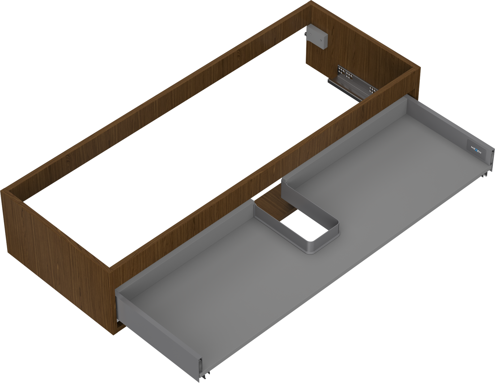 Výřez v zásuvce je navržen tak, aby pojmul sifon, který je nezbytný v instalacích umyvadlových. Díky tomu může být nábytek plně funkčně namontován, aniž by bylo nutné vzdát se prostoru v zásuvce ve prospěch instalace.