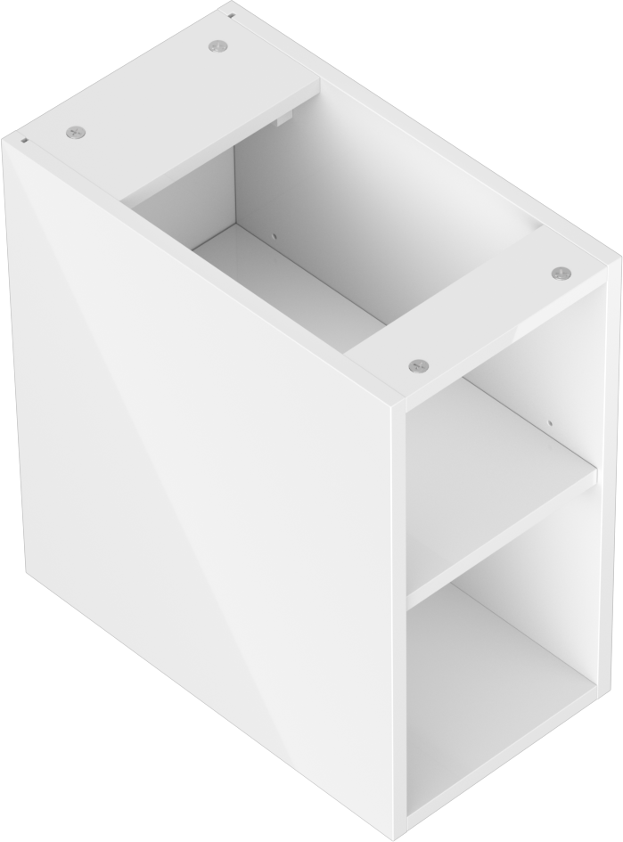 Korpus skříňky je dodáván zcela smontovaný, což znamená maximální pohodlí a úsporu času. Nemusíte ztrácet hodiny skládáním nábytku – stačí jej namontovat na vybrané místo v koupelně. Je to ideální řešení pro osoby, které si cení rychlé montáže a okamžitého efektu.