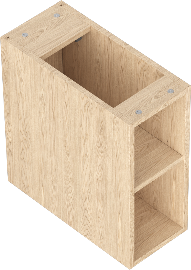 Korpus skříňky je dodáván zcela smontovaný, což znamená maximální pohodlí a úsporu času. Nemusíte ztrácet hodiny skládáním nábytku – stačí jej namontovat na vybrané místo v koupelně. Je to ideální řešení pro osoby, které si cení rychlé montáže a okamžitého efektu.