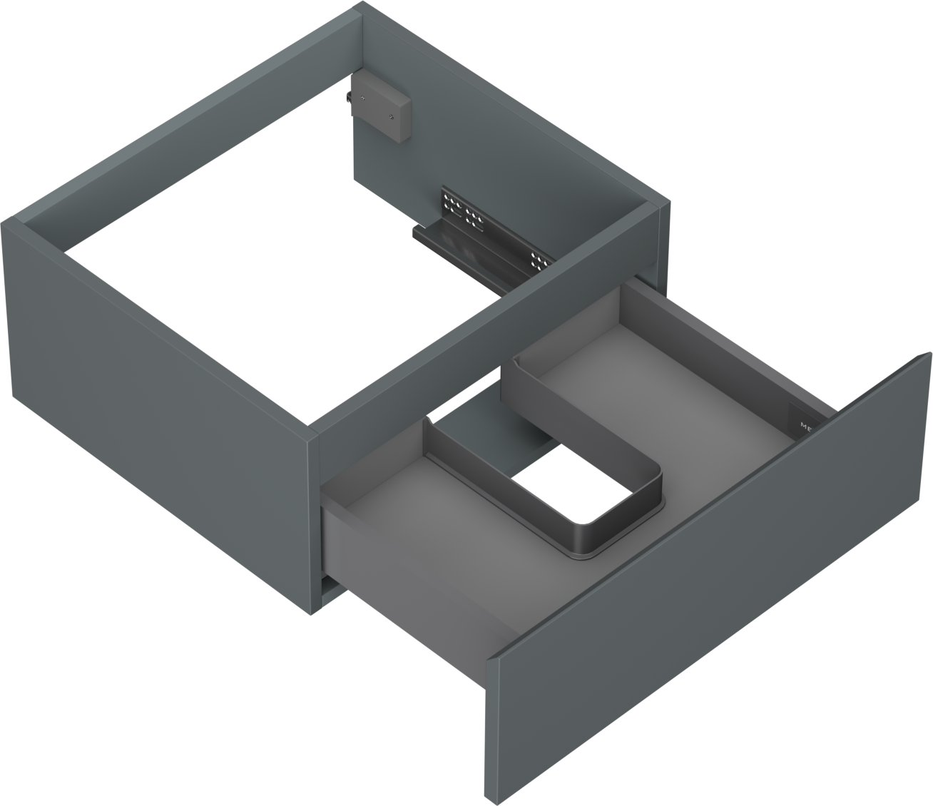 Výřez v zásuvce je navržen tak, aby pojmul sifon, který je nezbytný v instalacích umyvadlových. Díky tomu může být nábytek plně funkčně namontován, aniž by bylo nutné vzdát se prostoru v zásuvce ve prospěch instalace.