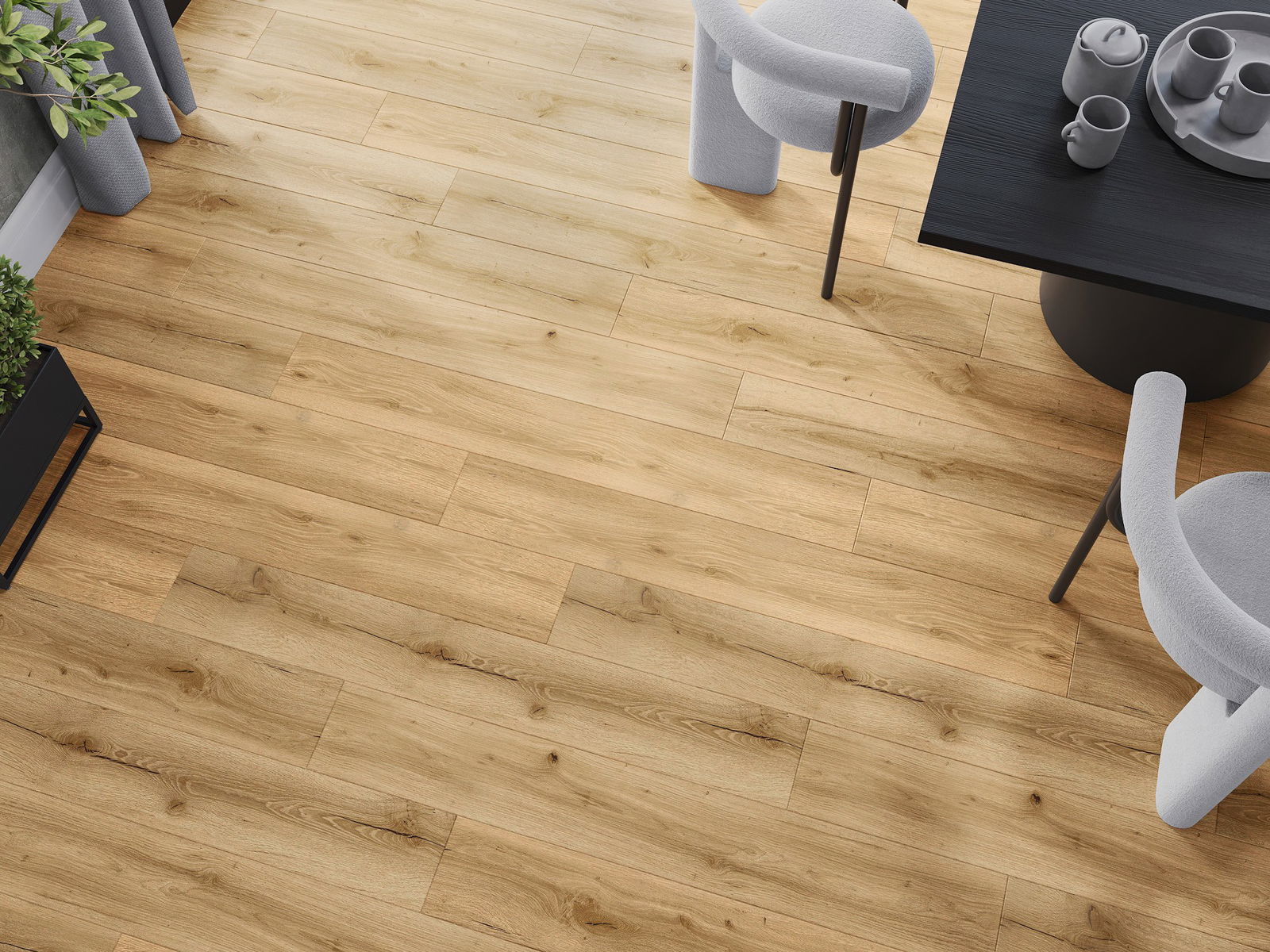 Panely mají 4strannou spáru - každá strana byla vyfrézována tak, aby po položení vzniklo spojení ve tvaru písmene V. Tento design způsobuje, že podlaha získává výraznější strukturu, což jí dodává hloubku a estetický charakter. Tento efekt je zvláště ceněn v moderních aranžmá, kde detaily zdůrazňují jedinečný vzhled interiéru.