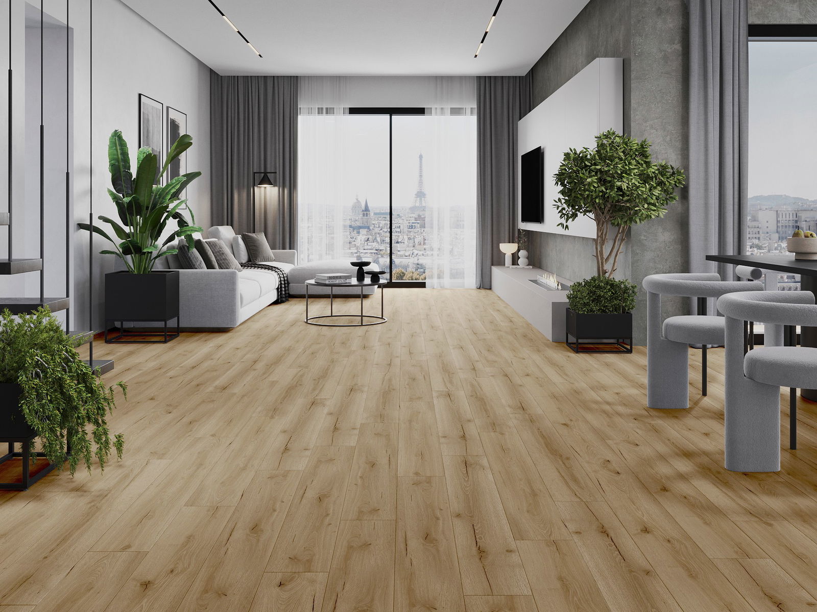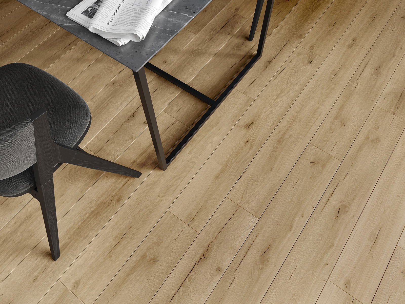 Panely mají 4strannou spáru - každá strana byla vyfrézována tak, aby po položení vzniklo spojení ve tvaru písmene V. Tento design způsobuje, že podlaha získává výraznější strukturu, což jí dodává hloubku a estetický charakter. Tento efekt je zvláště ceněn v moderních aranžmá, kde detaily zdůrazňují jedinečný vzhled interiéru.