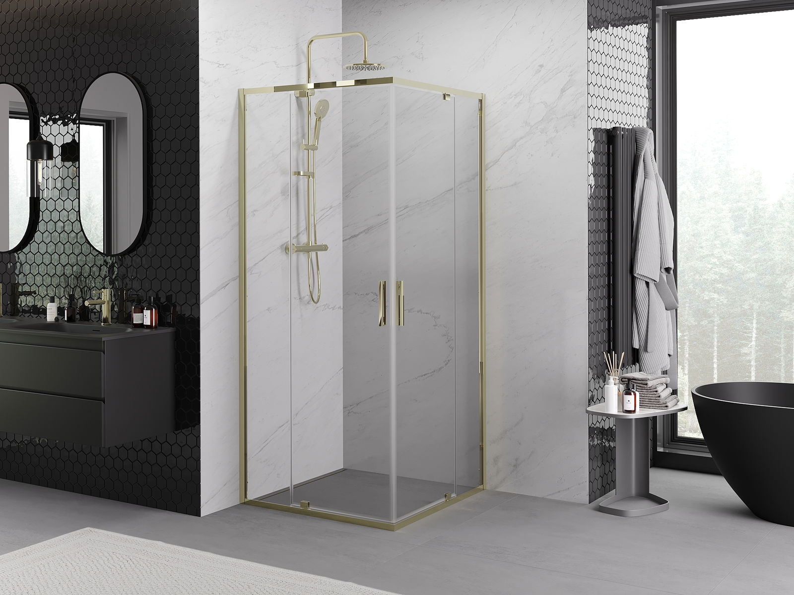 Mexen Exo čtvercová sprchová kabina s otočnými dveřmi 80 x 80 cm, transparentní, zlatá - 8110-080-080-50-00