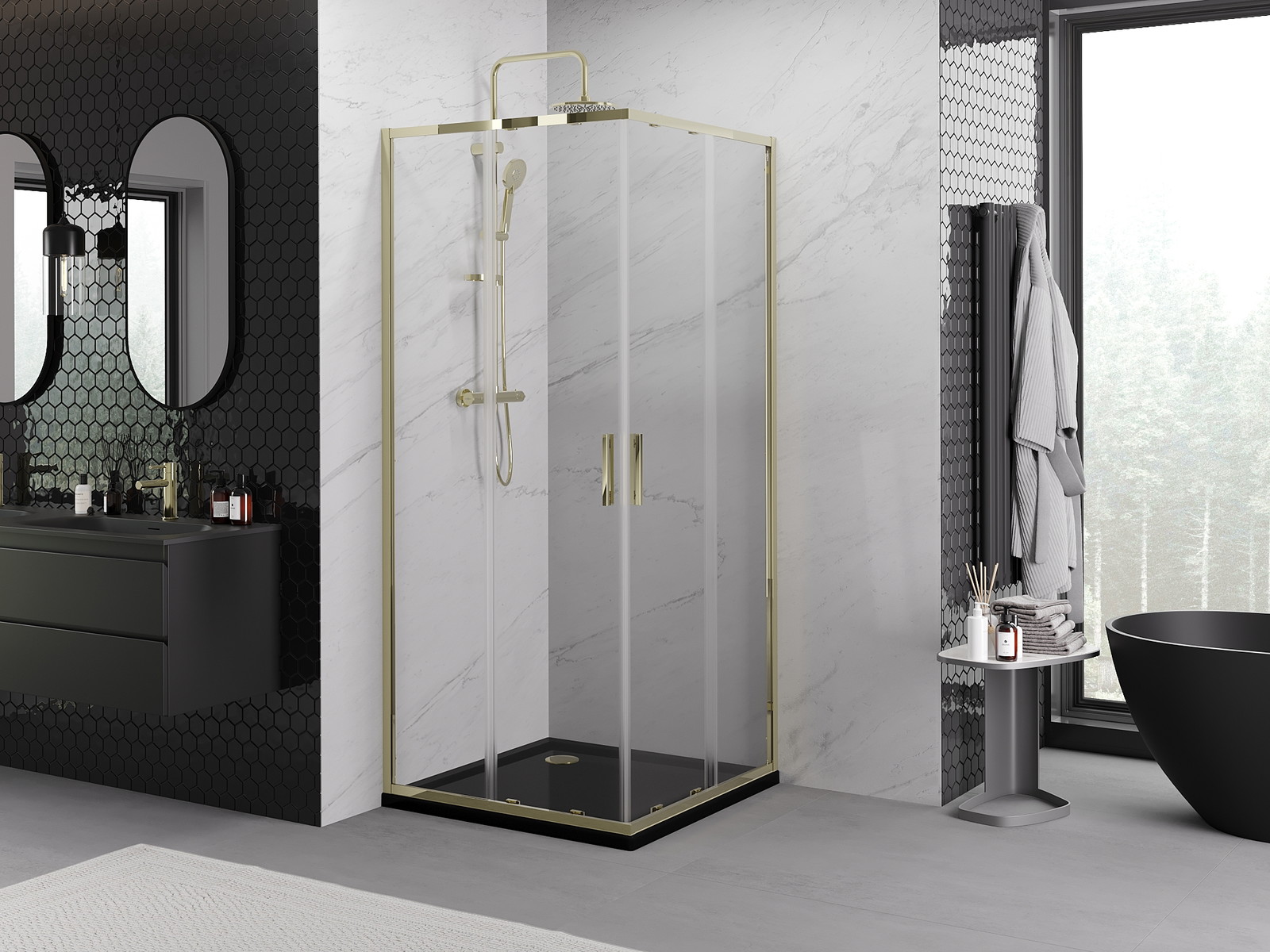 Mexen Exo čtvercový sprchový kout posuvný 80 x 80 cm, transparentní, zlatý - 8111-080-080-50-00
