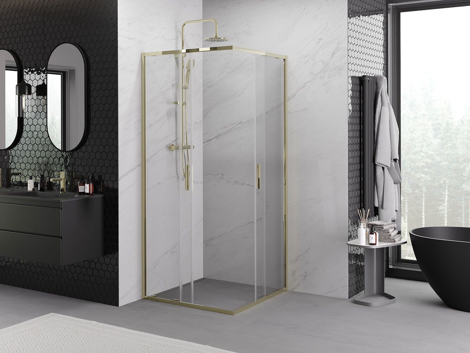 Mexen Exo čtvercová sprchová kabina posuvná 90 x 90 cm, transparentní, zlatá - 8111-090-090-50-00