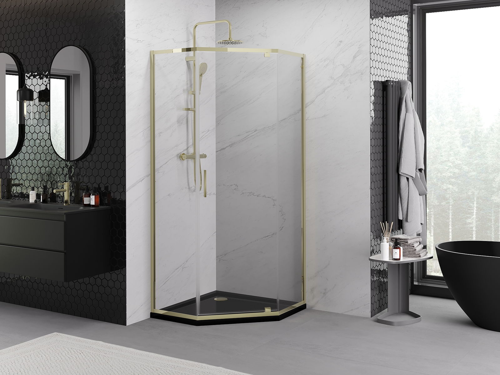 Mexen Exo pětiúhelníková sprchová kabina otevíratelná 100 x 100 cm, transparentní, zlatá - 812-100-100-50-00