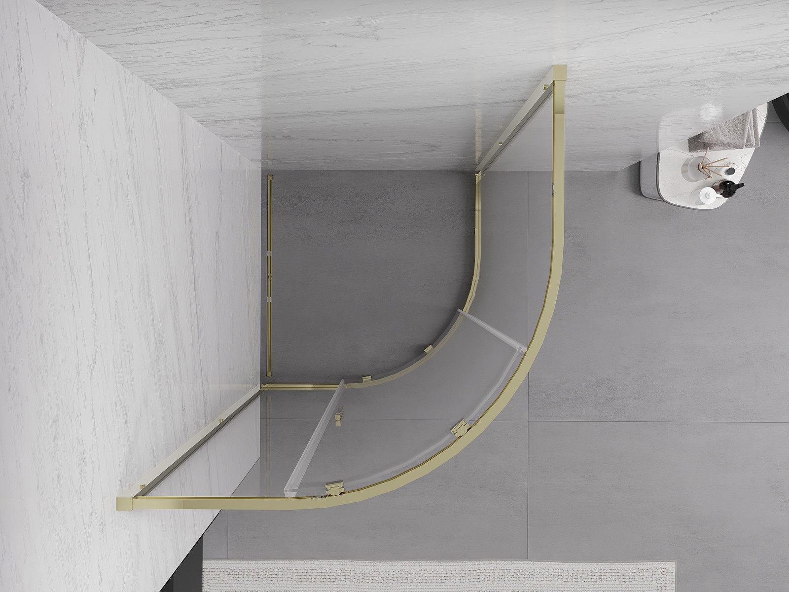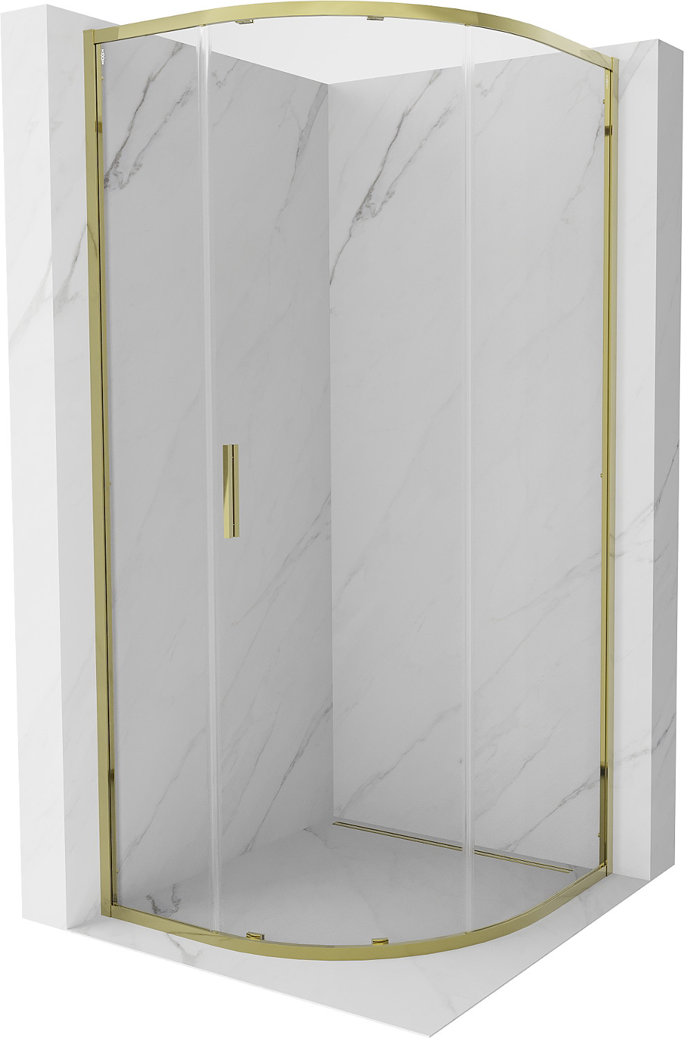 Mexen Exo posuvná čtvrtkruhová sprchová kabina 80 x 80 cm, transparentní, zlatá - 8131-080-080-50-00