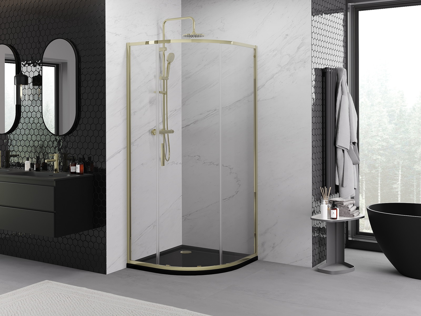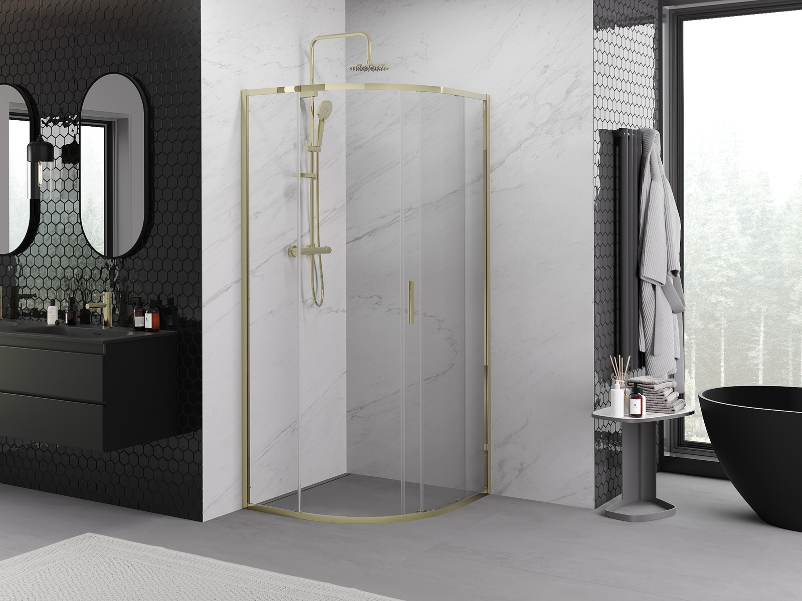 Praktická a pohodlná rukojeť je vyrobena z odolného a trvanlivého kovu. Moderní tvar ve spojení s povrchovou úpravou, která ladí s barvou profilů, dodává celku moderní a stylový vzhled, zdůrazňující estetiku každé koupelny.