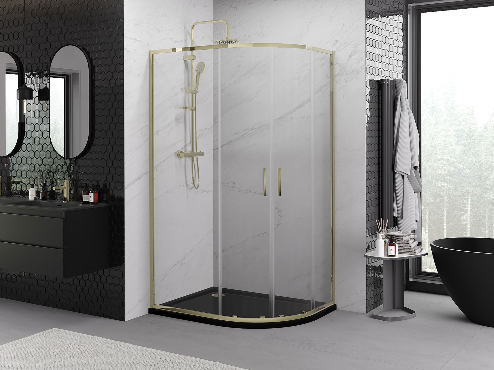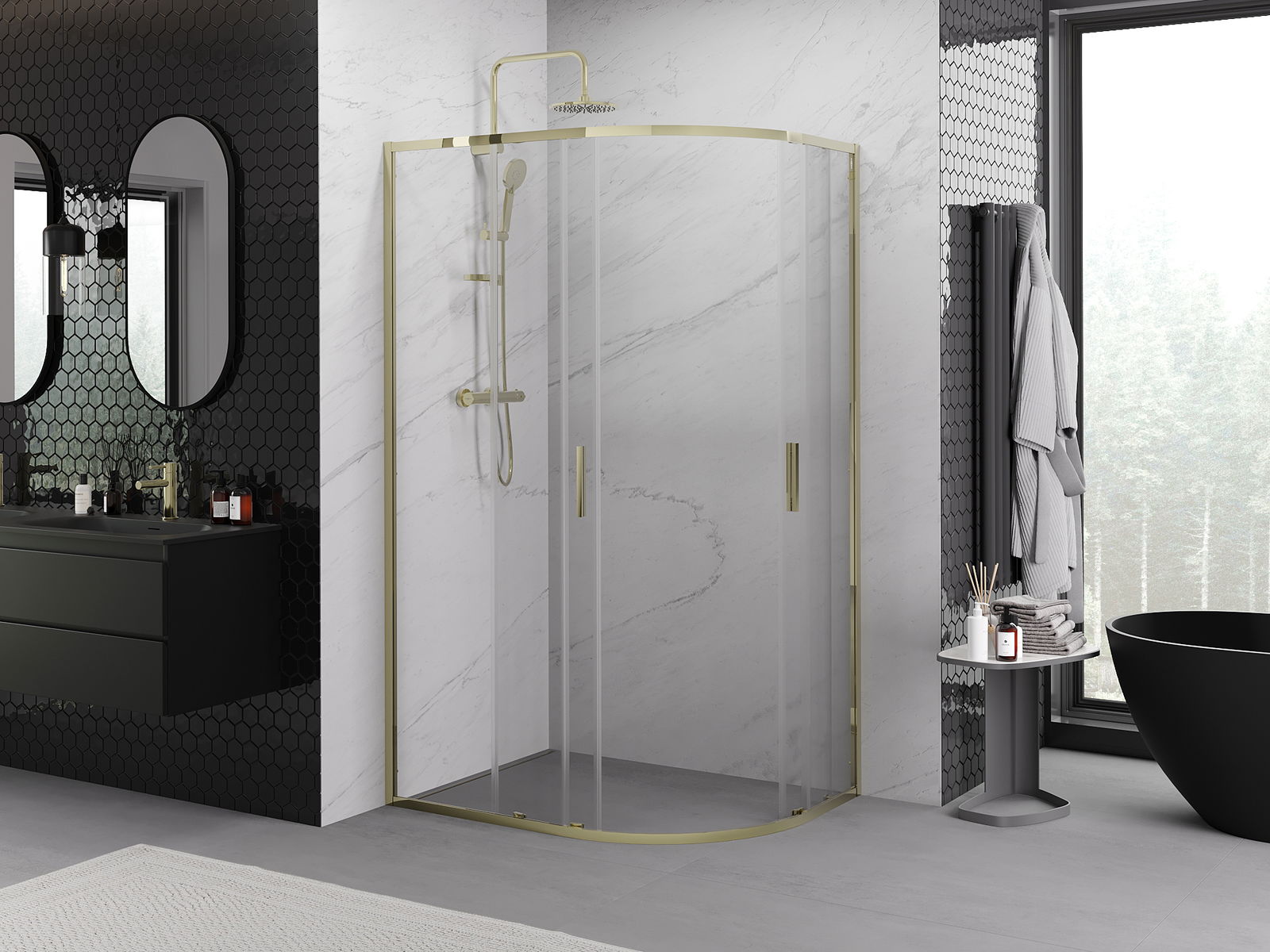 Praktická a pohodlná rukojeť je vyrobena z odolného a trvanlivého kovu. Moderní tvar ve spojení s povrchovou úpravou, která ladí s barvou profilů, dodává celku moderní a stylový vzhled, zdůrazňující estetiku každé koupelny.