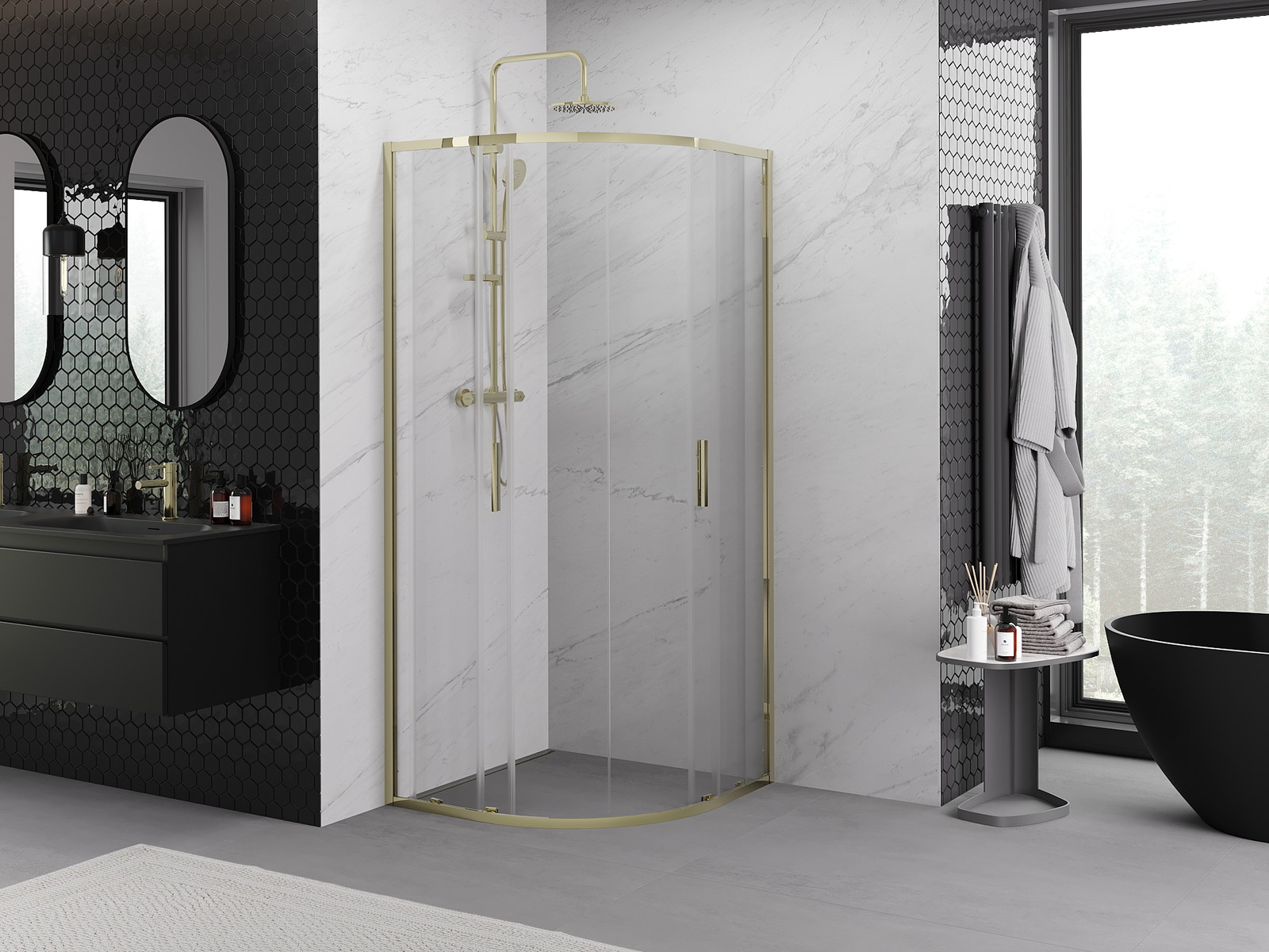 Mexen Exo sprchový kout půlkruhový posuvný 100 x 100 cm, transparentní, zlatý - 8132-100-100-50-00