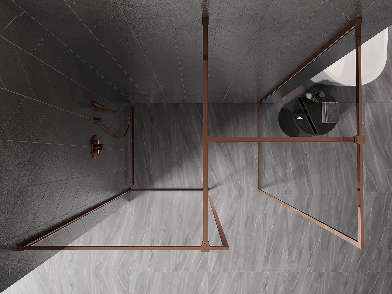 Mexen Kioto-F sprchová stěna Walk-in s rámem 140 x 70 cm, transparentní 8 mm, růžové zlato - 800-140-202-04-60-070