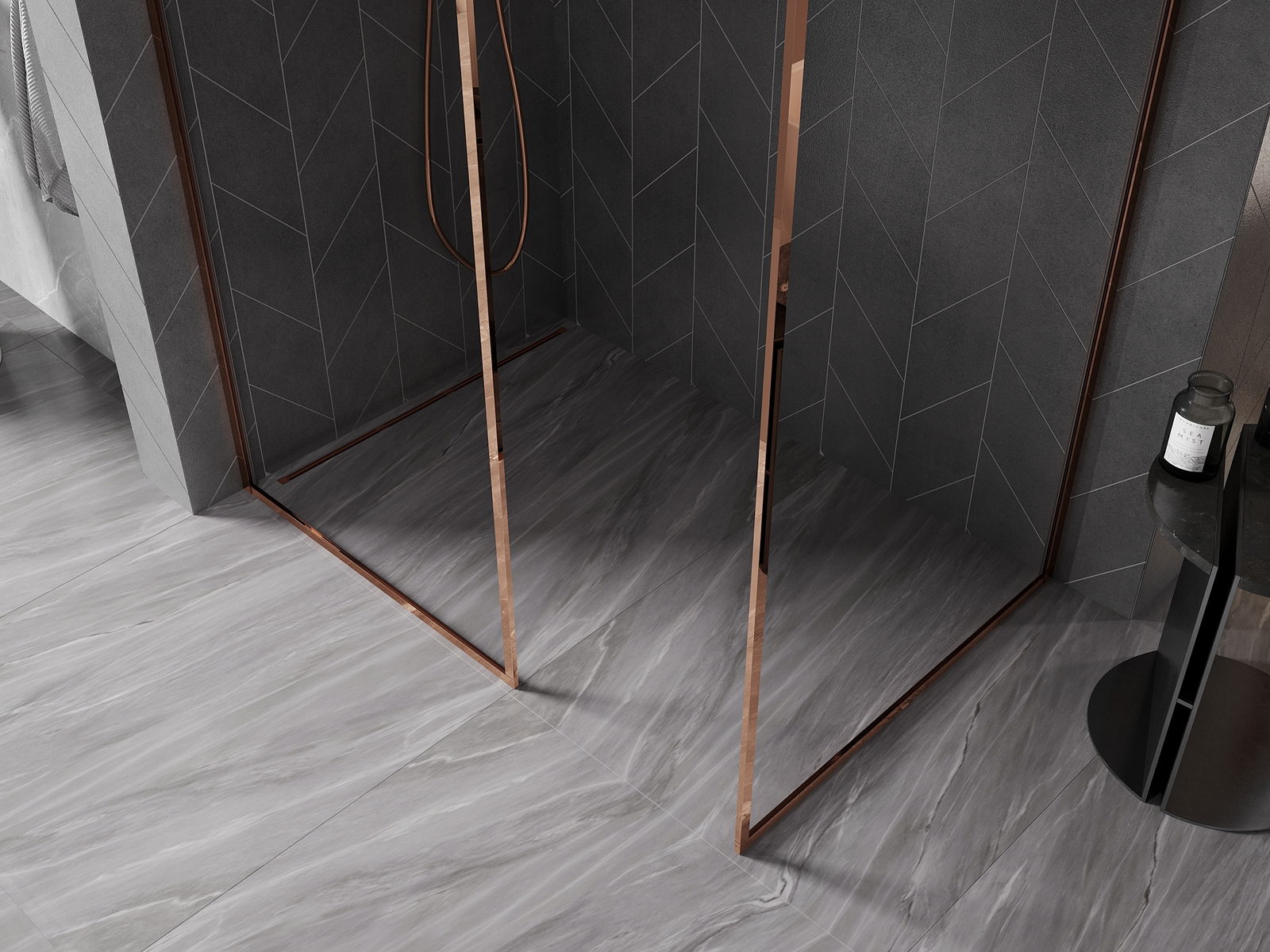 Mexen Kioto-F sprchová stěna Walk-in s rámem 160 x 85 cm, transparentní 8 mm, růžové zlato - 800-160-202-04-60-085