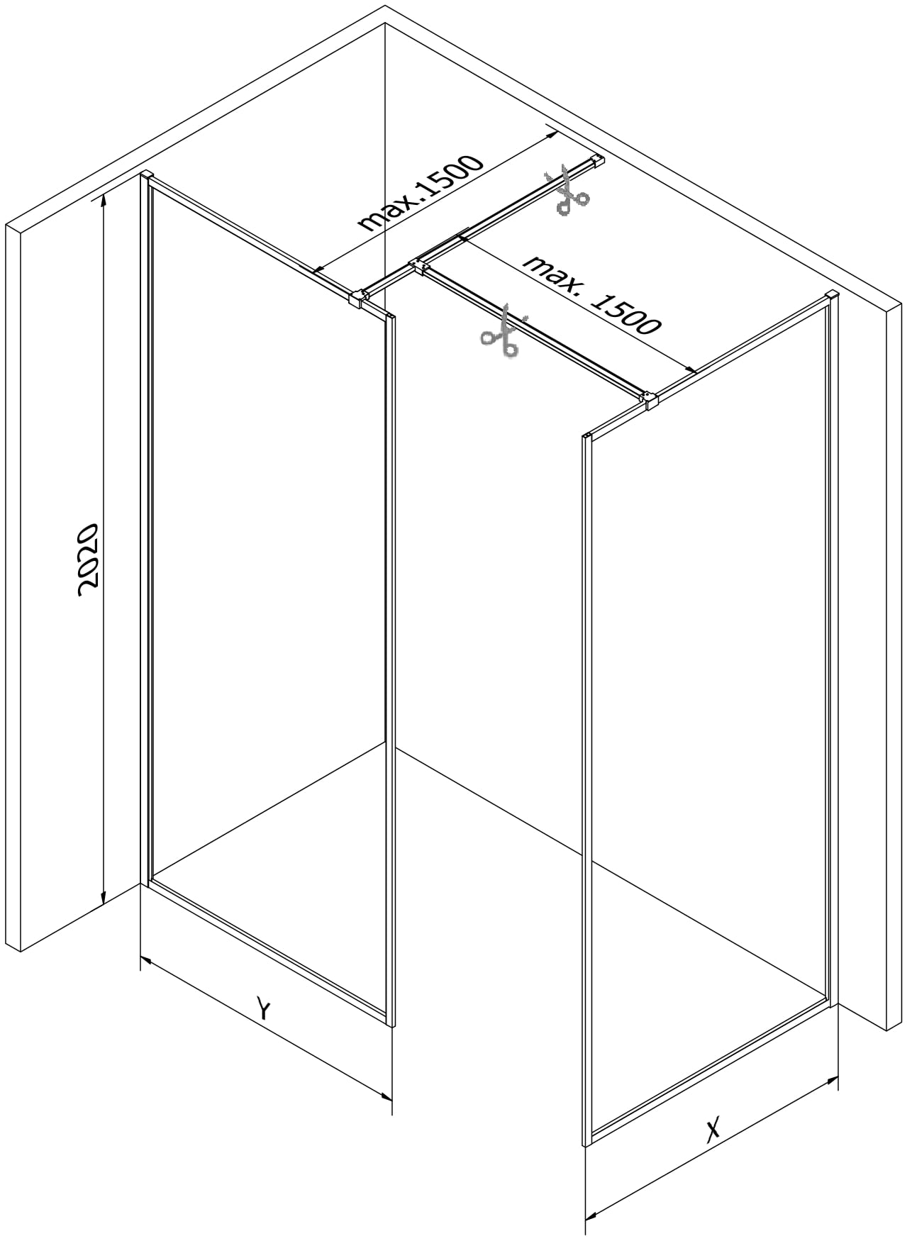Šířka: 120x115 cm (stěna X - 120 cm, stěna Y - 115 cm)