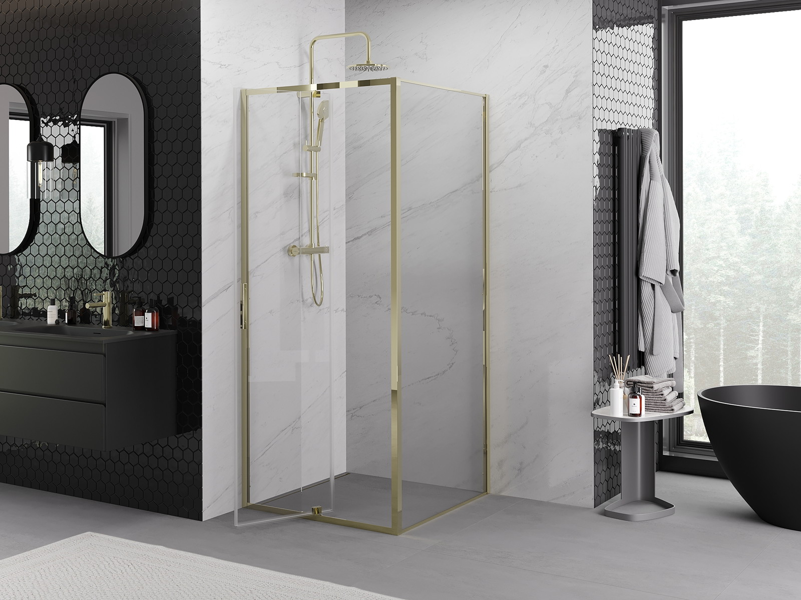 Mexen Exo sprchový kout otočný 95 x 95 cm, transparentní, zlatý - 819-095-095-50-00