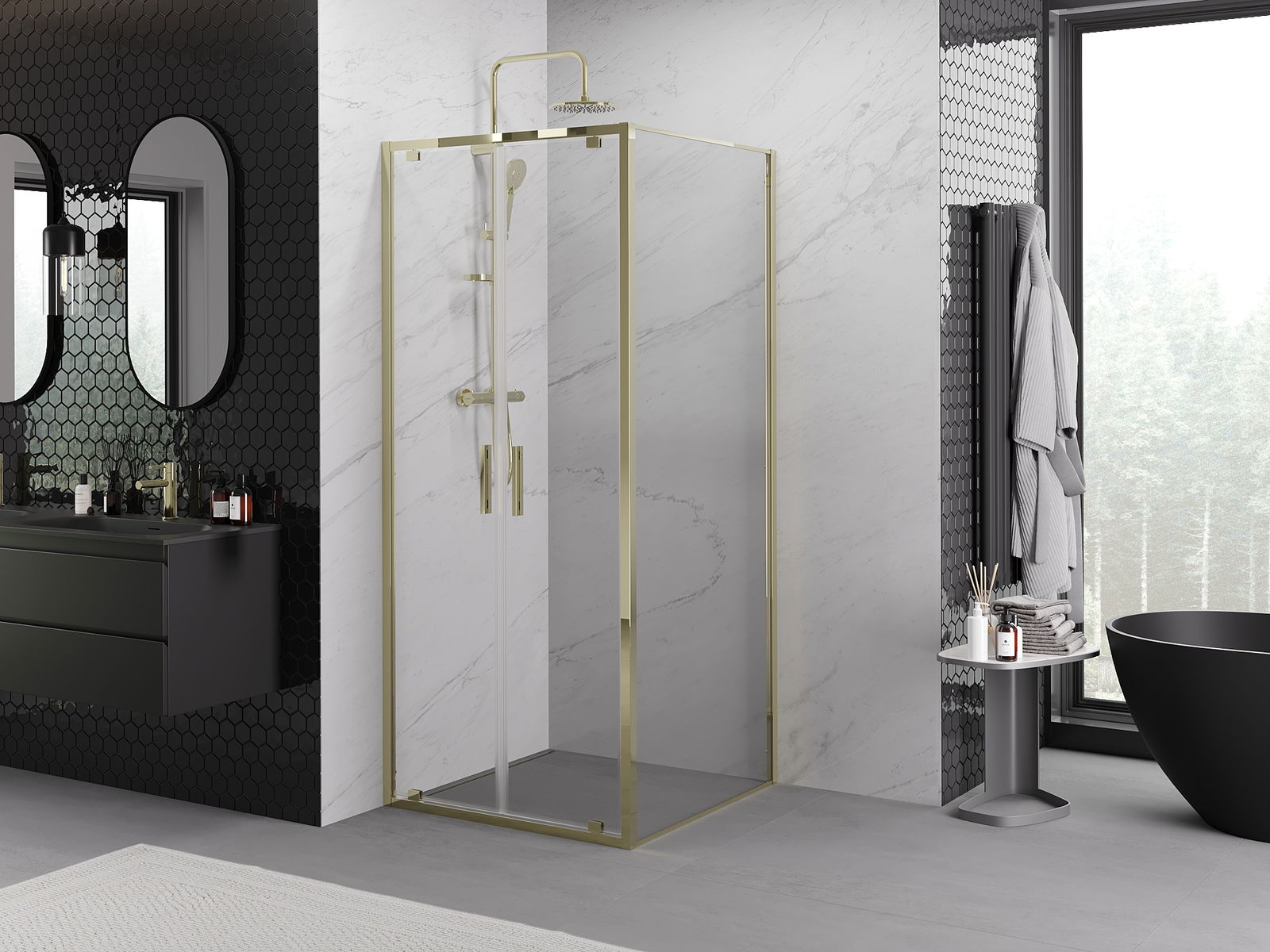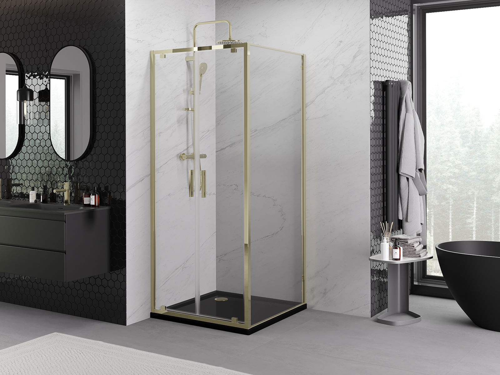 • Mexen Exo sprchová kabina s výklopnými dveřmi 70 x 70 cm, průhledná, zlatá - 8182-070-070-50-00