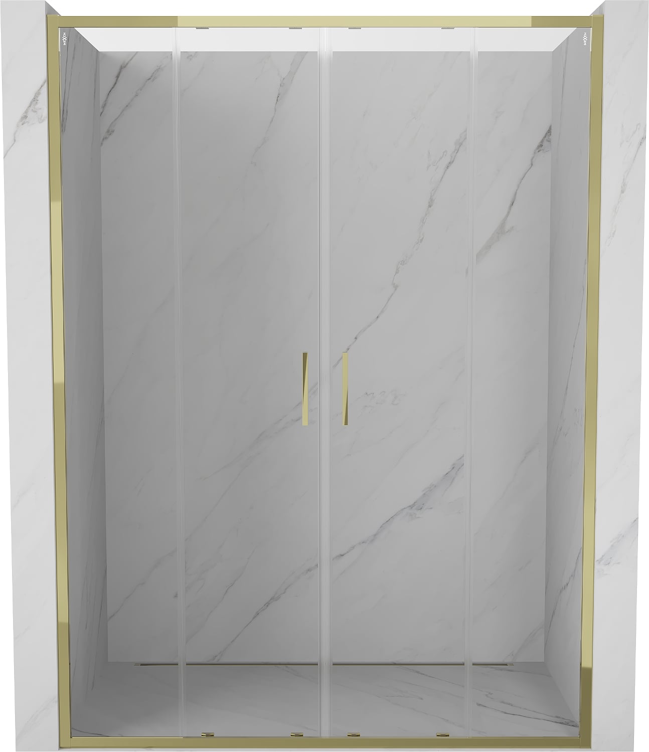 Mexen Exo dvojité posuvné sprchové dveře 140 cm, transparentní, zlaté - 8152-140-000-50-00